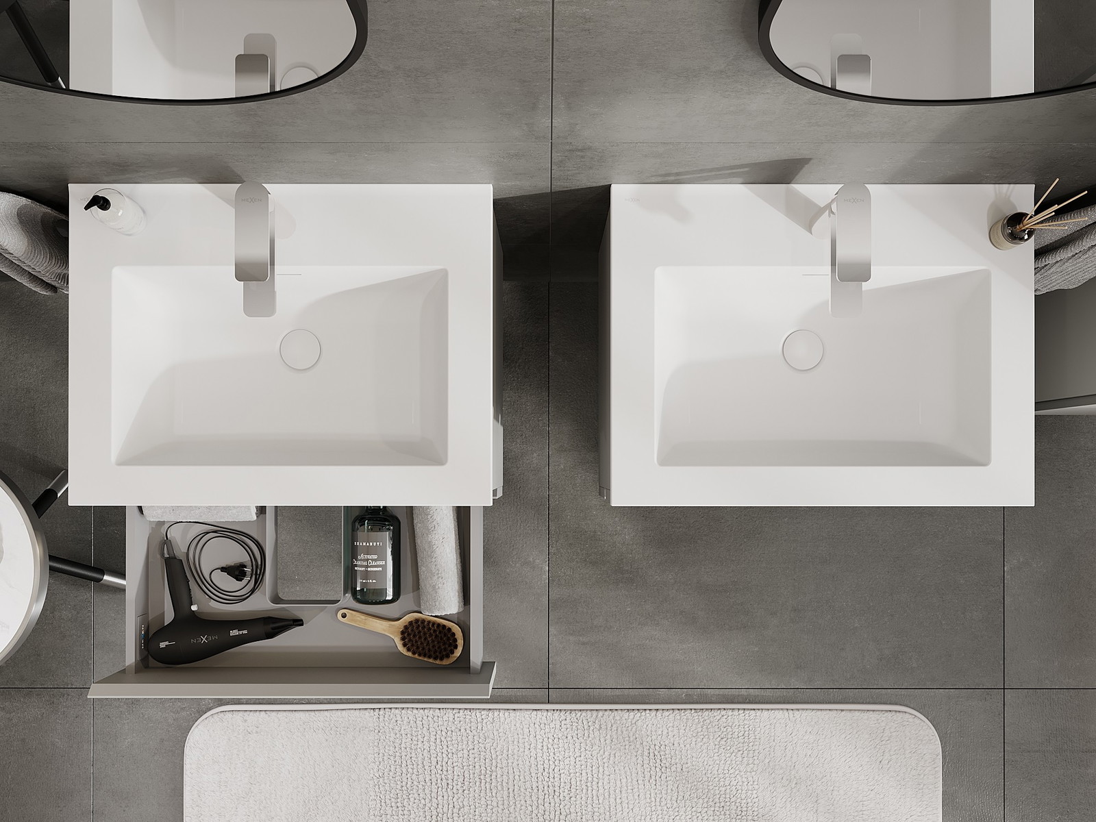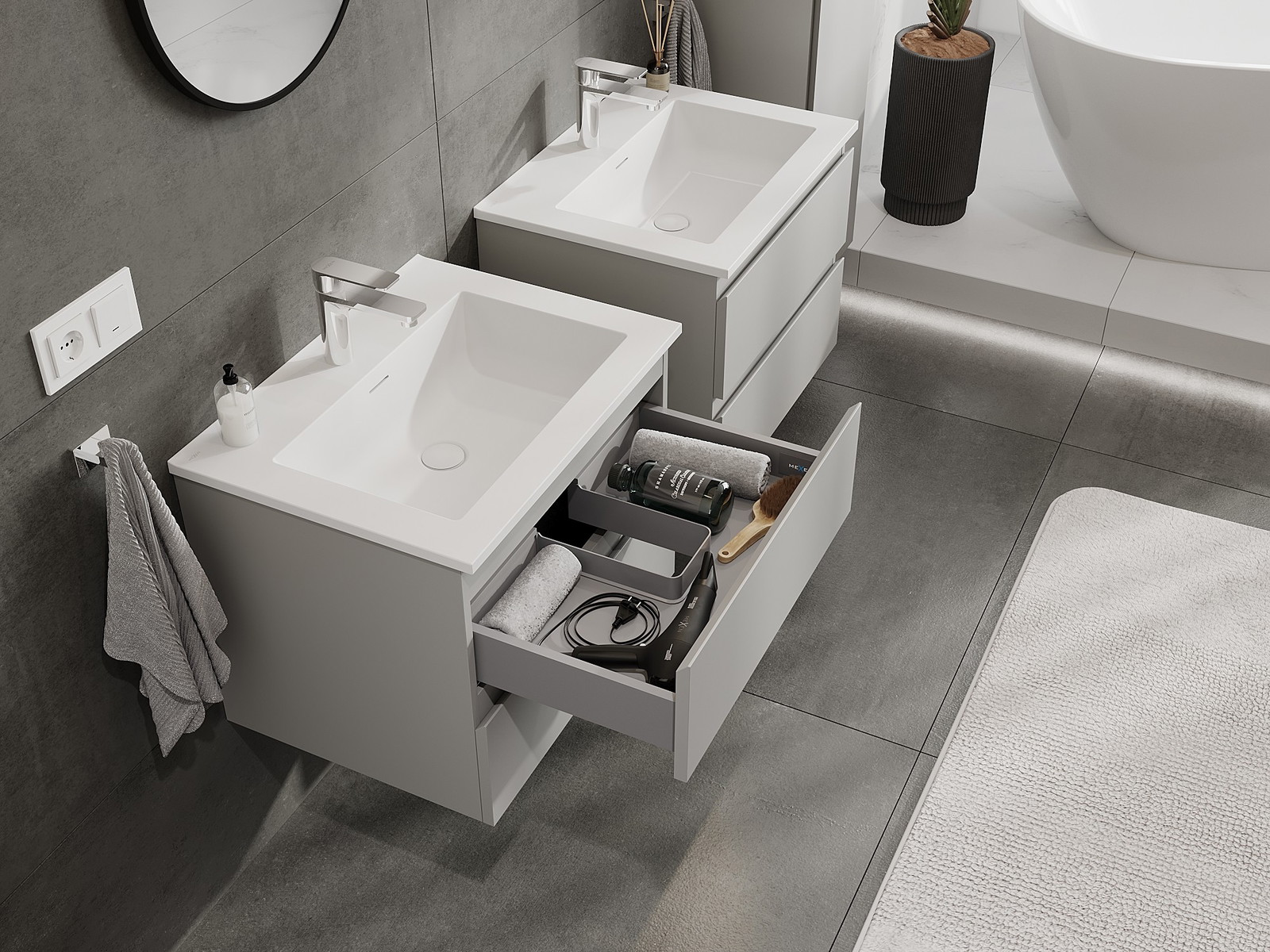 Výřez v zásuvce je navržen tak, aby pojmul sifon, který je nezbytný v instalacích umyvadlových. Díky tomu může být nábytek plně funkčně namontován, aniž by bylo nutné vzdát se prostoru v zásuvce ve prospěch instalace.