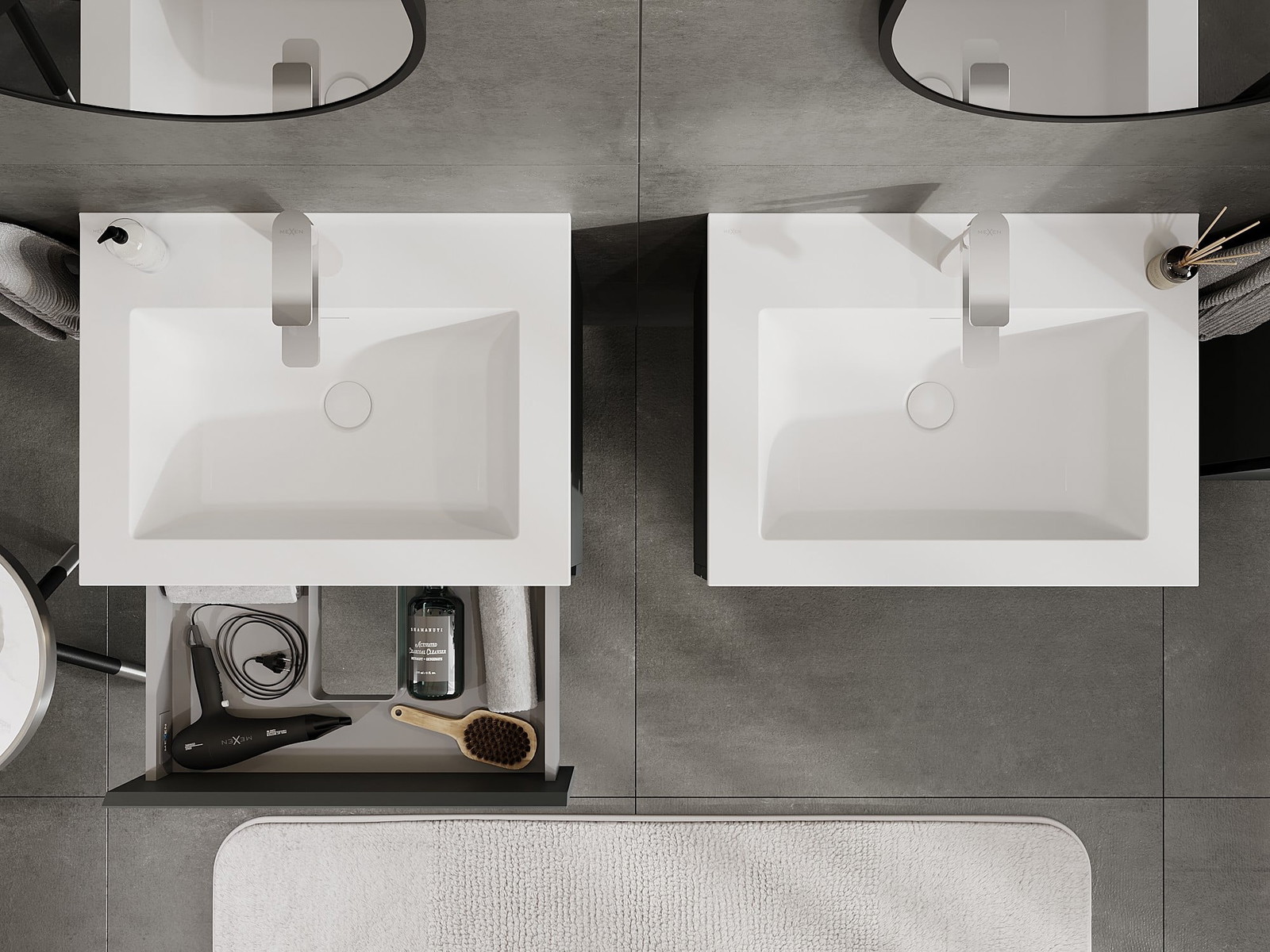 Výřez v zásuvce je navržen tak, aby pojmul sifon, který je nezbytný v instalacích umyvadlových. Díky tomu může být nábytek plně funkčně namontován, aniž by bylo nutné vzdát se prostoru v zásuvce ve prospěch instalace.