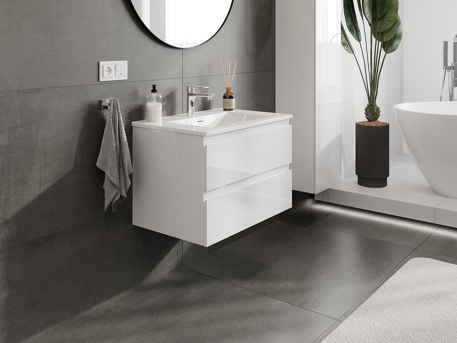 Naše modulární koupelnový nábytek lze kombinovat v různých barevných konfiguracích, což umožňuje plnou personalizaci. Můžete si vybrat jak vzhled, tak funkce jednotlivých prvků, což umožňuje přizpůsobit nábytek vašim stylovým a uživatelským preferencím.