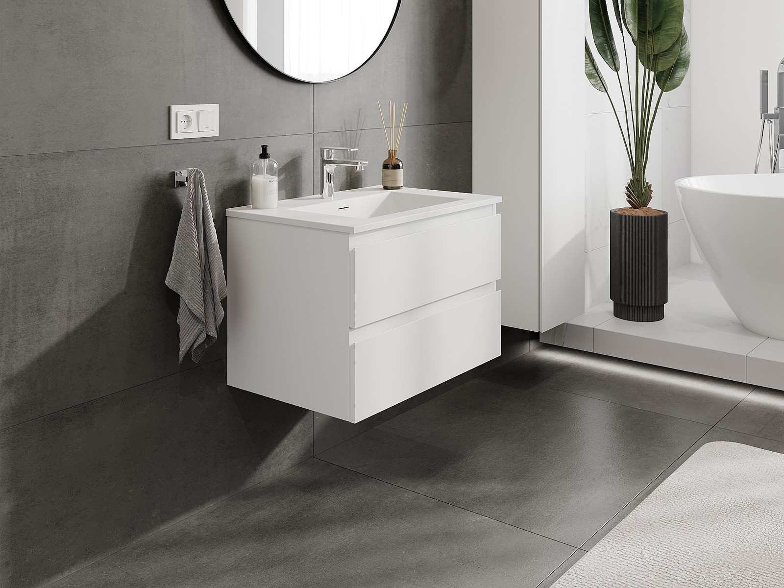 Naše modulární koupelnový nábytek lze kombinovat v různých barevných konfiguracích, což umožňuje plnou personalizaci. Můžete si vybrat jak vzhled, tak funkce jednotlivých prvků, což umožňuje přizpůsobit nábytek vašim stylovým a uživatelským preferencím.
