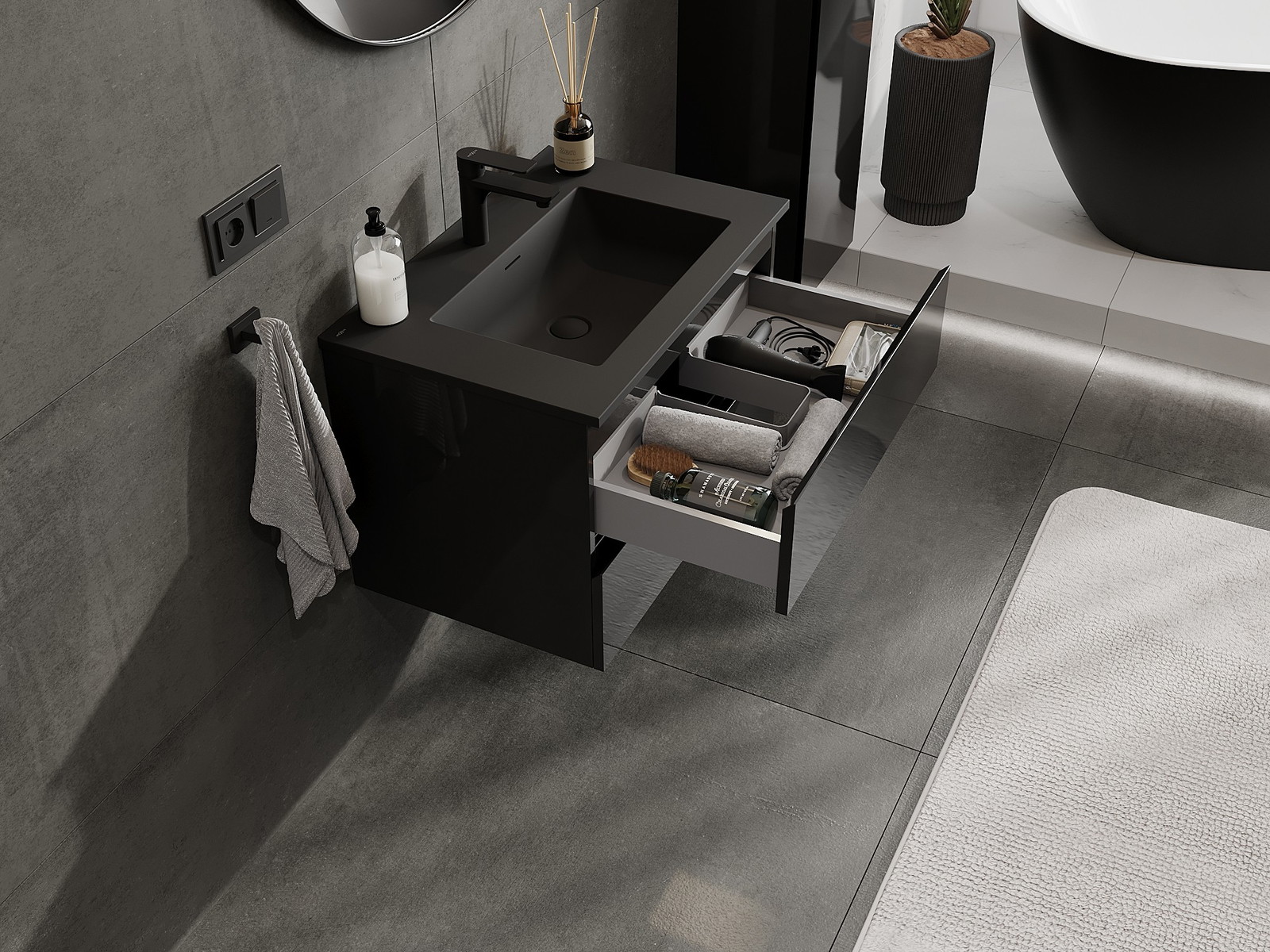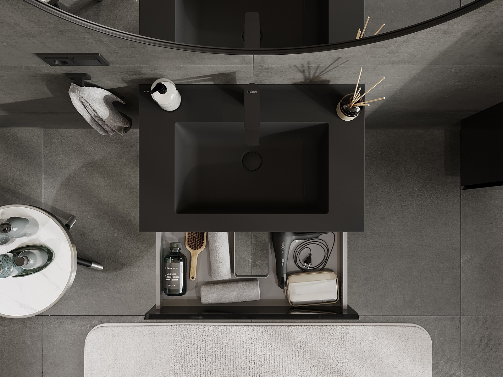 Výřez v zásuvce je navržen tak, aby pojmul sifon, který je nezbytný v instalacích umyvadlových. Díky tomu může být nábytek plně funkčně namontován, aniž by bylo nutné vzdát se prostoru v zásuvce ve prospěch instalace.