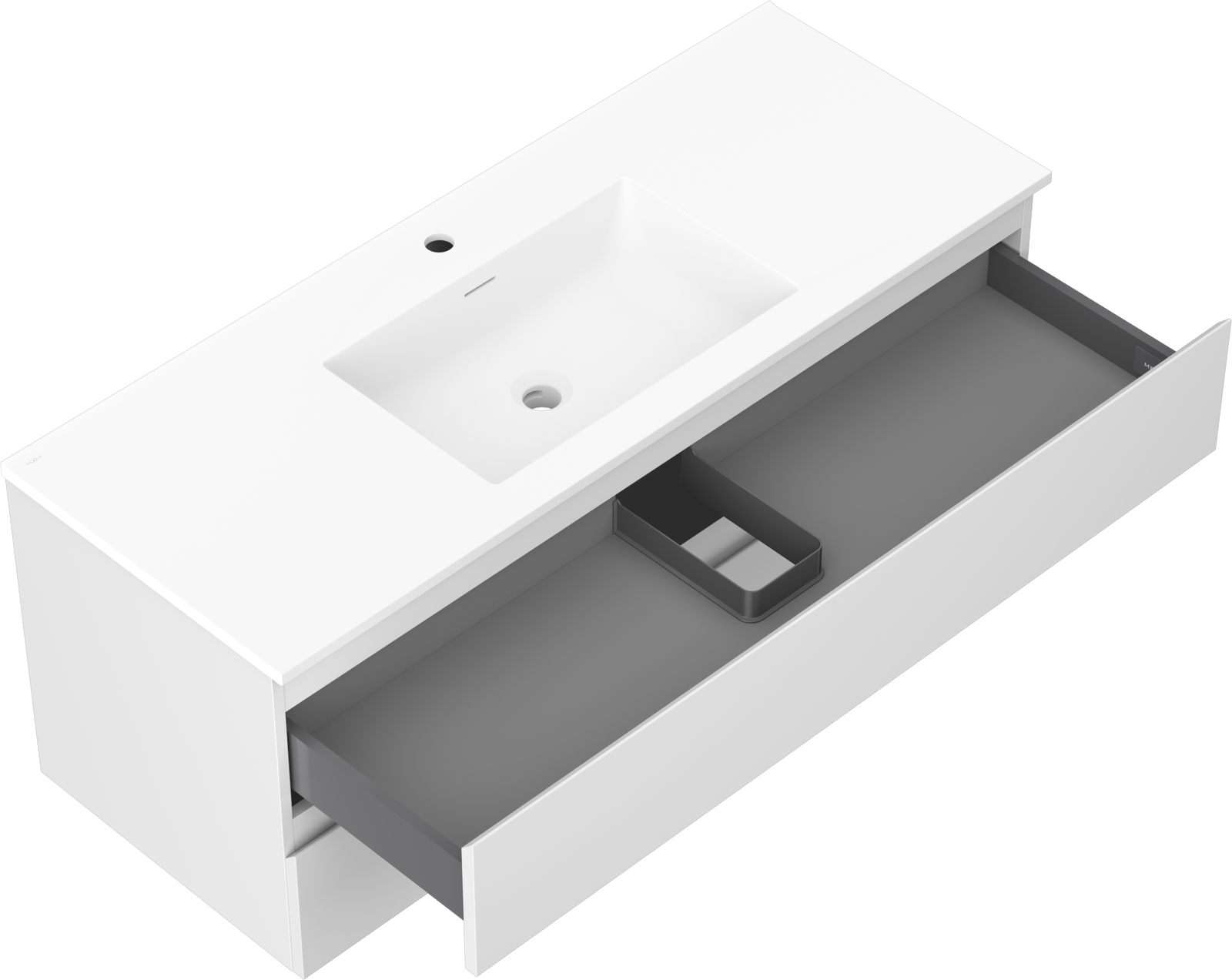Výřez v zásuvce je navržen tak, aby pojmul sifon, který je nezbytný v instalacích umyvadlových. Díky tomu může být nábytek plně funkčně namontován, aniž by bylo nutné vzdát se prostoru v zásuvce ve prospěch instalace.