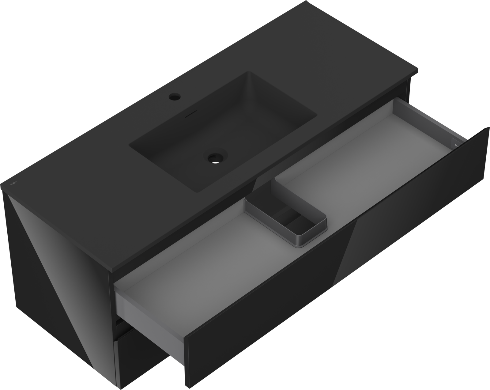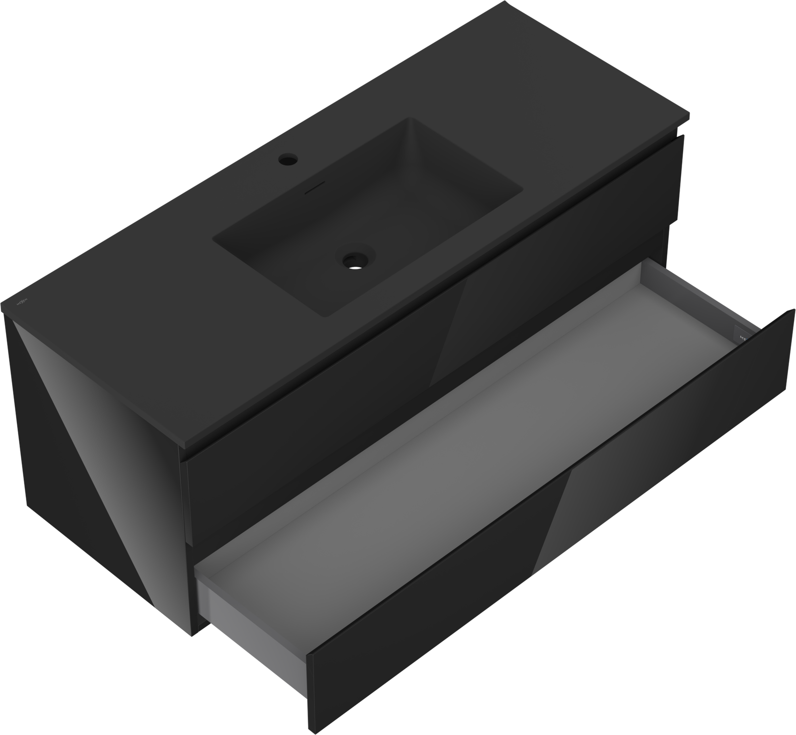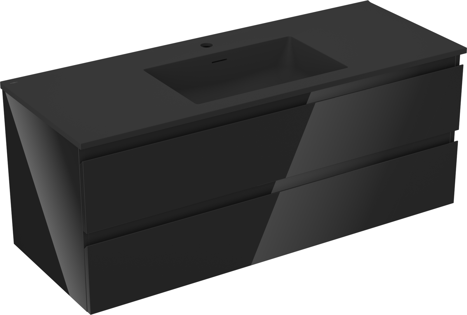 Mexen Orio koupelnová skříňka 120 cm s umyvadlem Otis, 2 šuplíky, černý lesk/černý mat - 91A10-12047-2-BFF70-W18M71