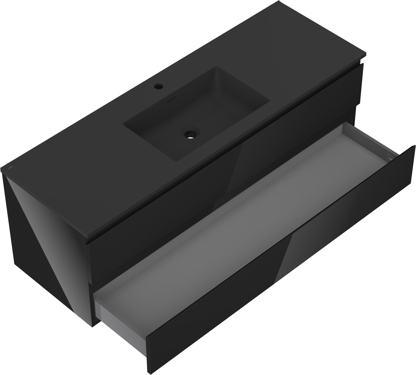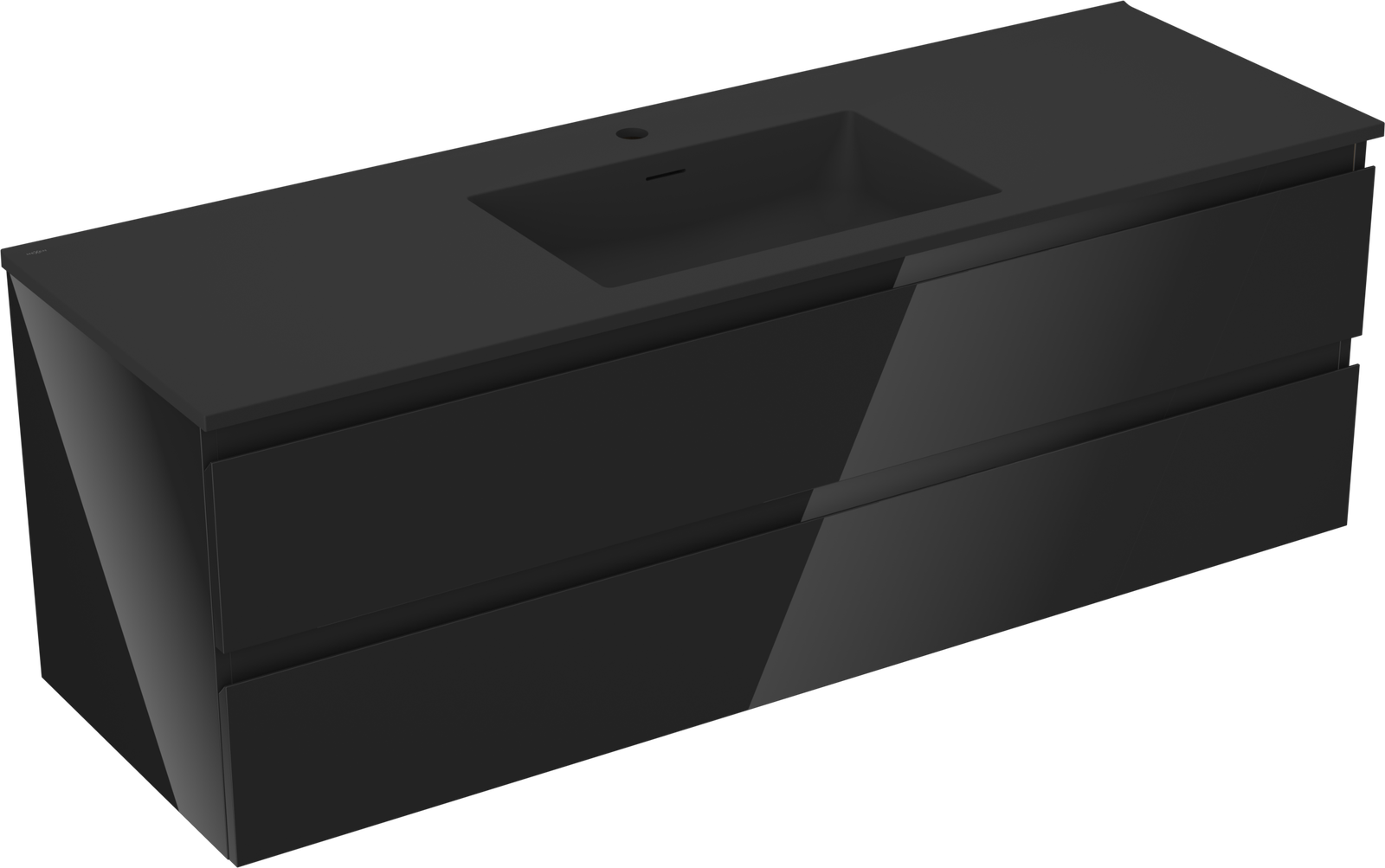 Mexen Orio koupelnová skříňka 140 cm s umyvadlem Otis, 2 zásuvky, černý lesk/černý mat - 91A10-14047-2-BFF70-W18M71