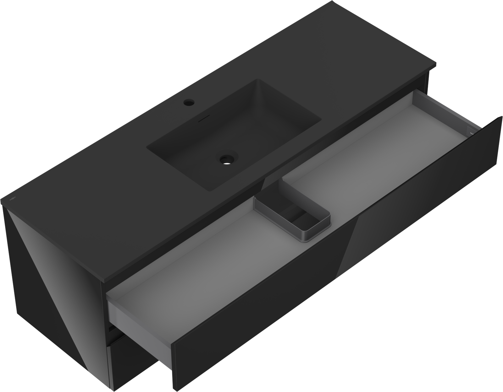 Výřez v zásuvce je navržen tak, aby pojmul sifon, který je nezbytný v instalacích umyvadlových. Díky tomu může být nábytek plně funkčně namontován, aniž by bylo nutné vzdát se prostoru v zásuvce ve prospěch instalace.