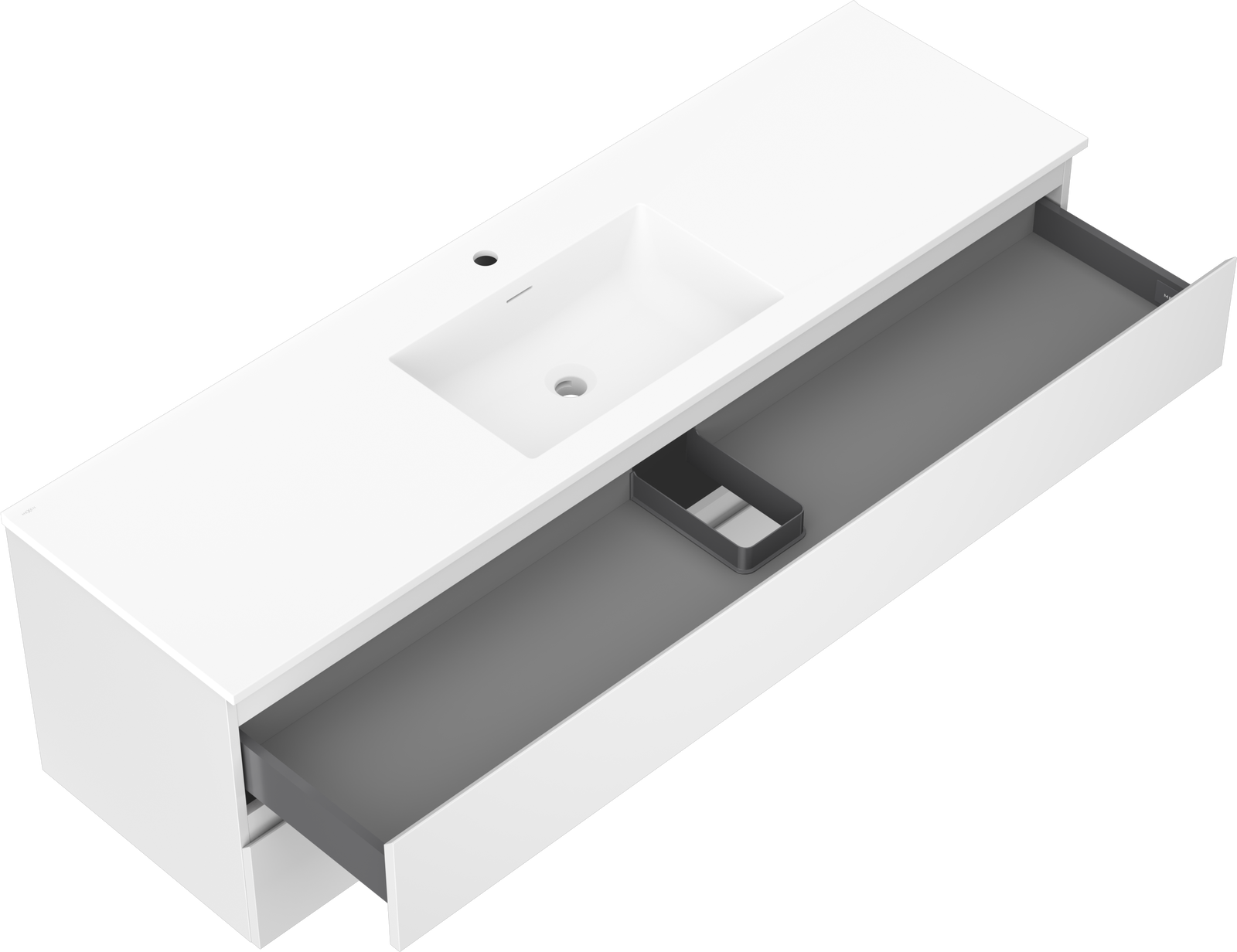 Výřez v zásuvce je navržen tak, aby pojmul sifon, který je nezbytný v instalacích umyvadlových. Díky tomu může být nábytek plně funkčně namontován, aniž by bylo nutné vzdát se prostoru v zásuvce ve prospěch instalace.