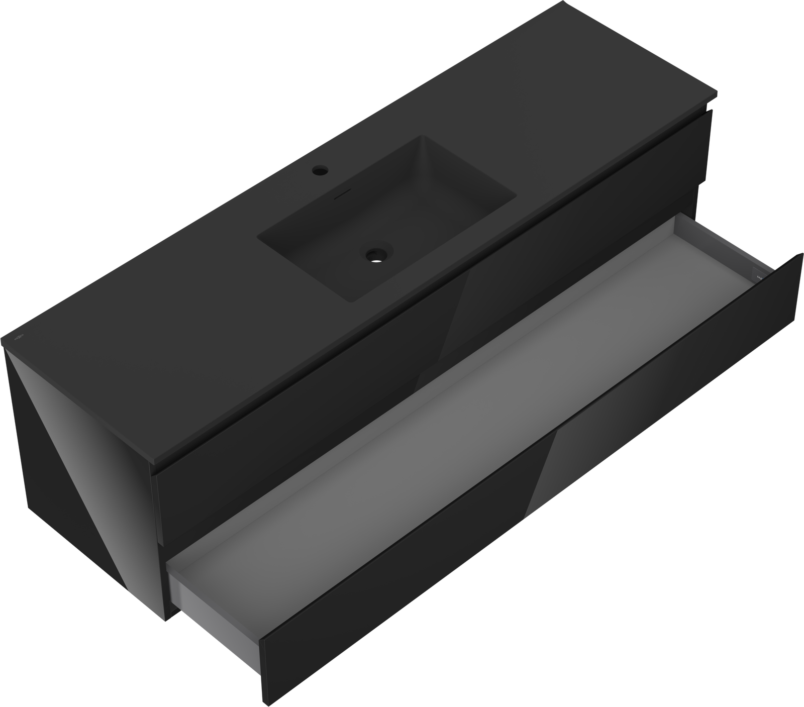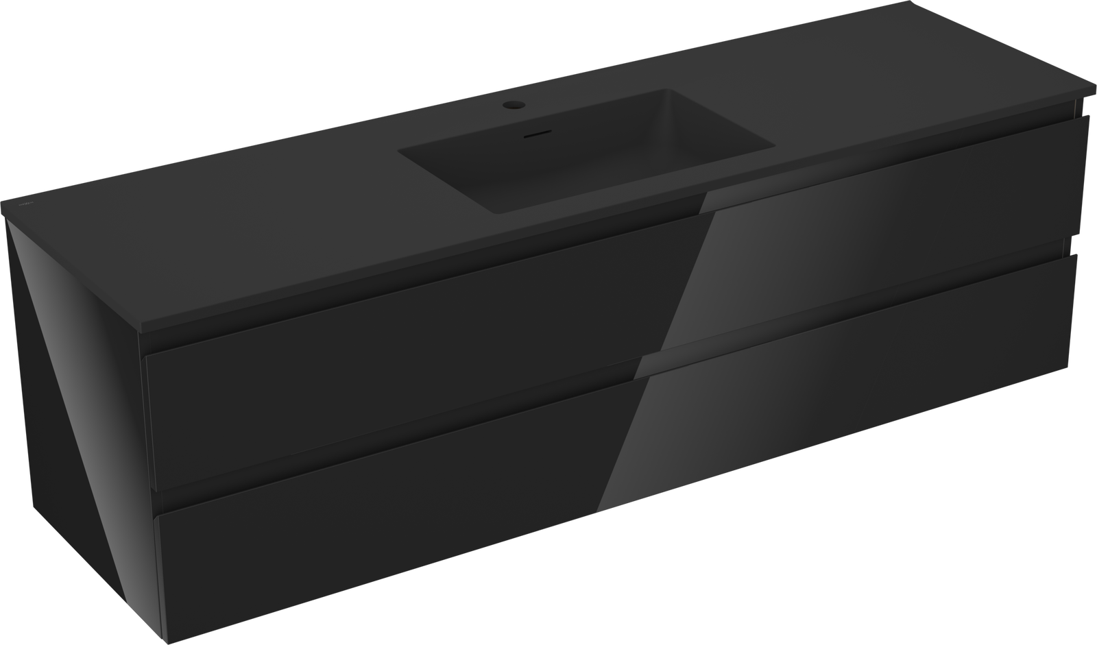 Mexen Orio koupelnová skříňka 160 cm s umyvadlem Otis, 2 zásuvky, černý lesk/černý mat - 91A10-16047-2-BFF70-W18M71