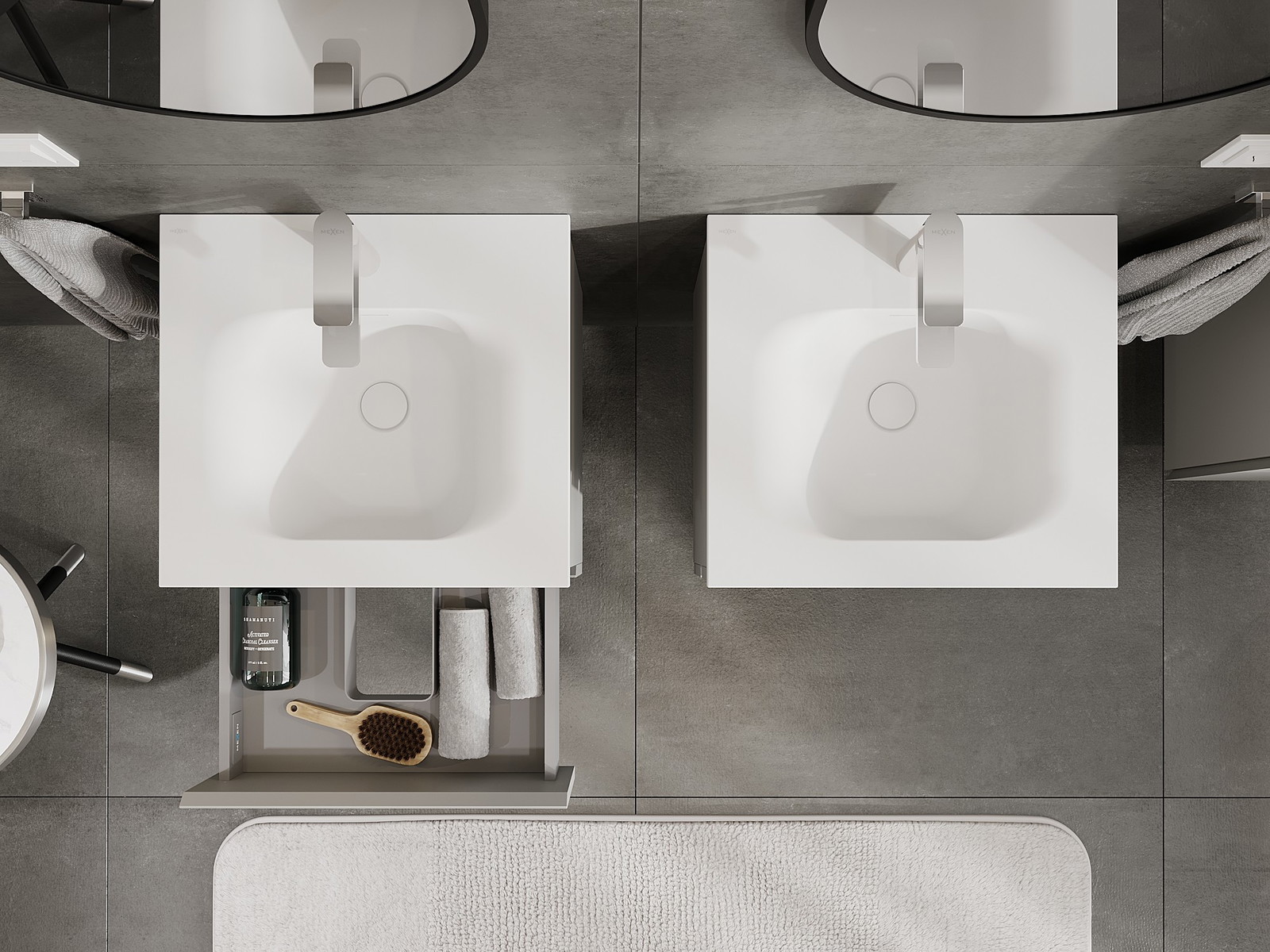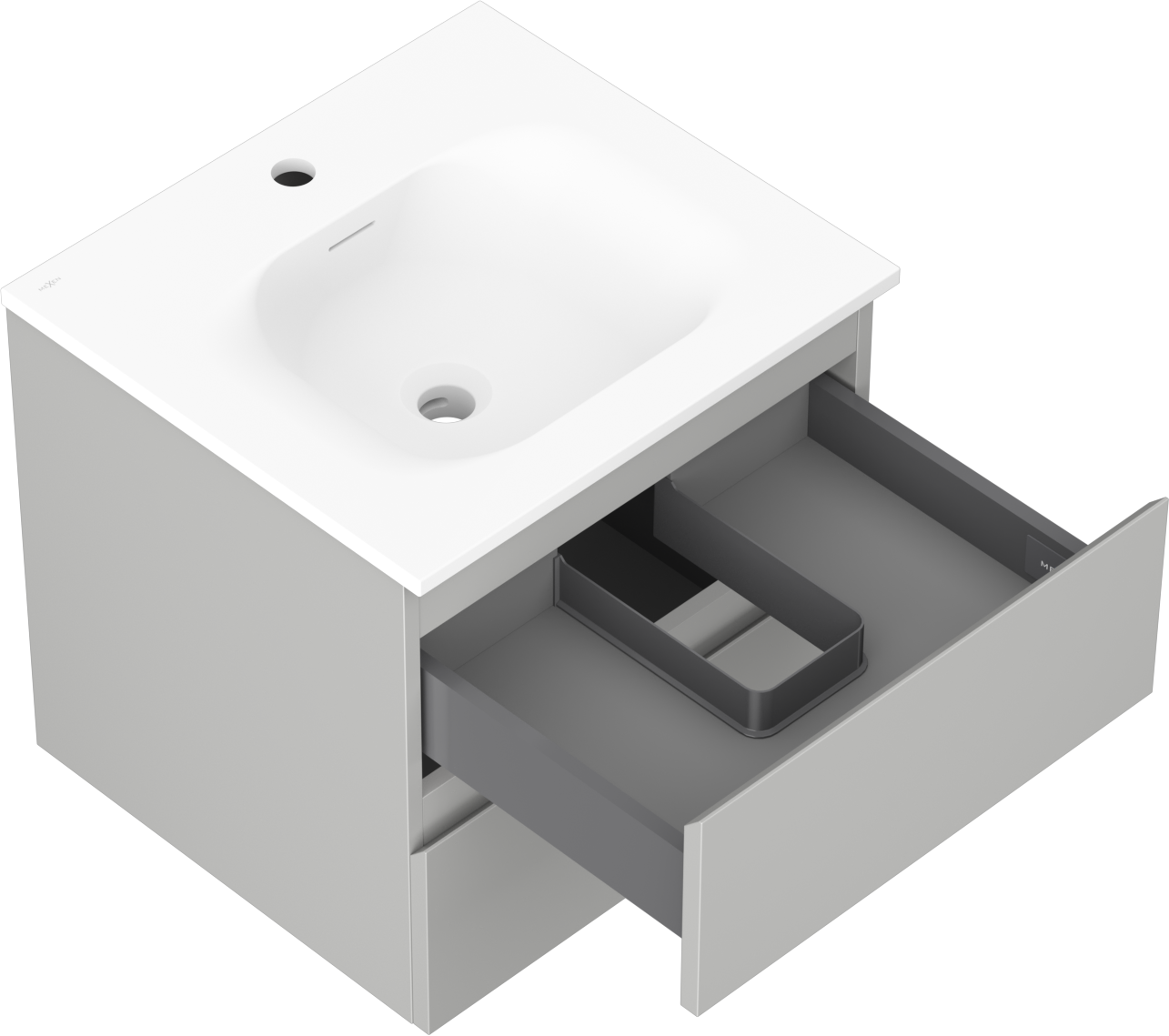 Výřez v zásuvce je navržen tak, aby pojmul sifon, který je nezbytný v instalacích umyvadlových. Díky tomu může být nábytek plně funkčně namontován, aniž by bylo nutné vzdát se prostoru v zásuvce ve prospěch instalace.