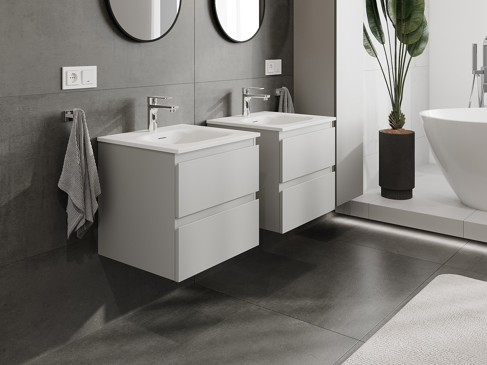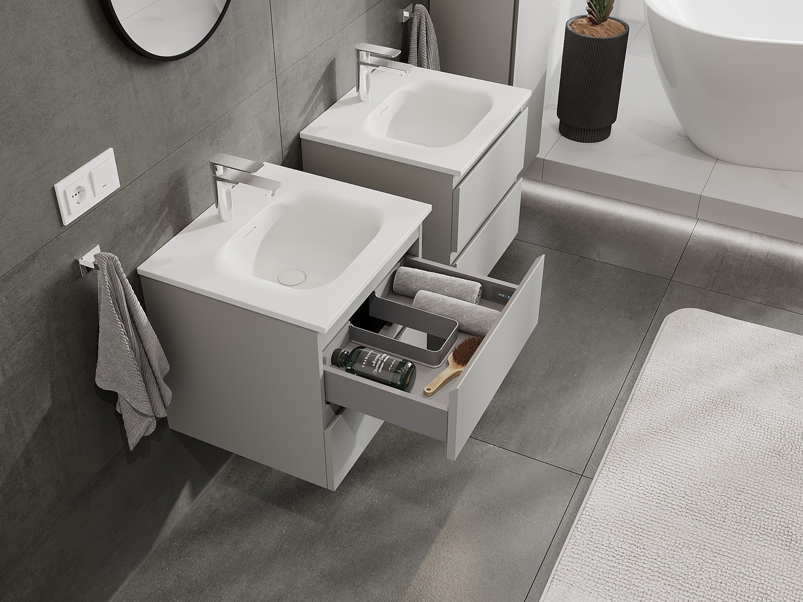 Naše modulární koupelnový nábytek lze kombinovat v různých barevných konfiguracích, což umožňuje plnou personalizaci. Můžete si vybrat jak vzhled, tak funkce jednotlivých prvků, což umožňuje přizpůsobit nábytek vašim stylovým a uživatelským preferencím.