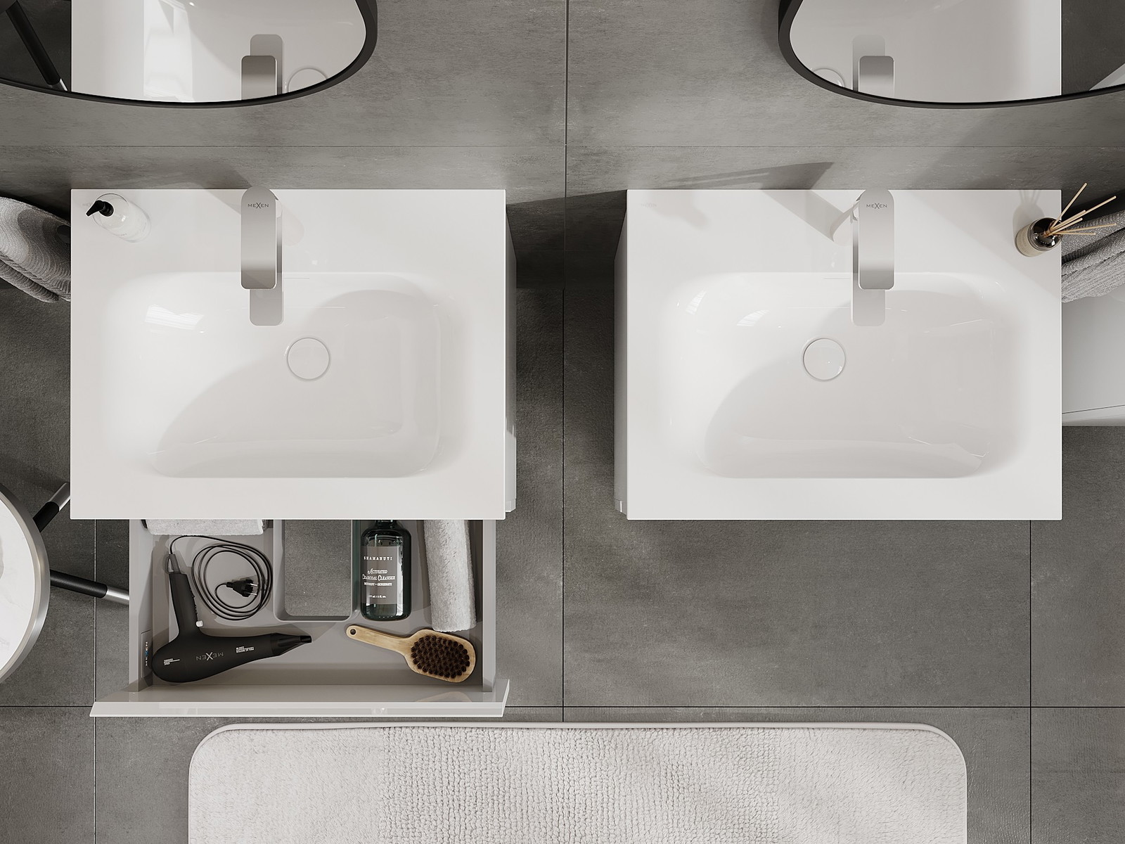 Výřez v zásuvce je navržen tak, aby pojmul sifon, který je nezbytný v instalacích umyvadlových. Díky tomu může být nábytek plně funkčně namontován, aniž by bylo nutné vzdát se prostoru v zásuvce ve prospěch instalace.