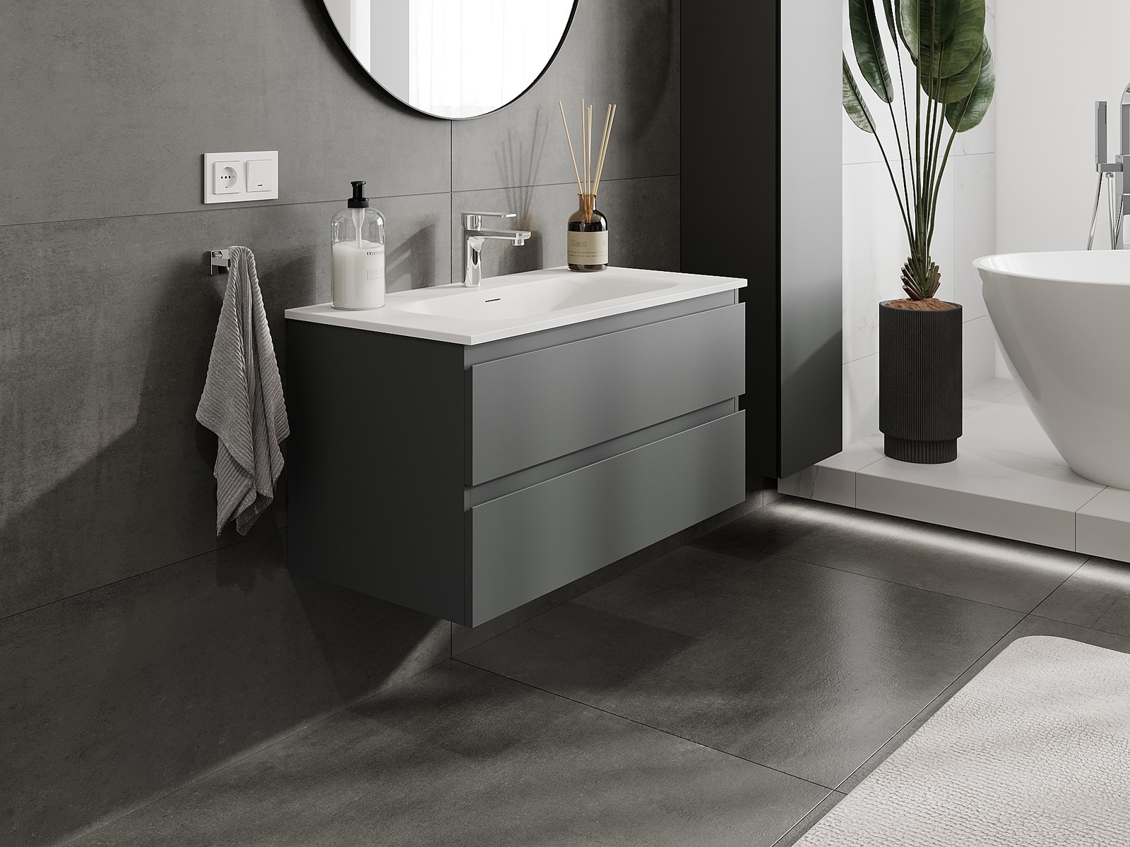 Naše modulární koupelnový nábytek lze kombinovat v různých barevných konfiguracích, což umožňuje plnou personalizaci. Můžete si vybrat jak vzhled, tak funkce jednotlivých prvků, což umožňuje přizpůsobit nábytek vašim stylovým a uživatelským preferencím.