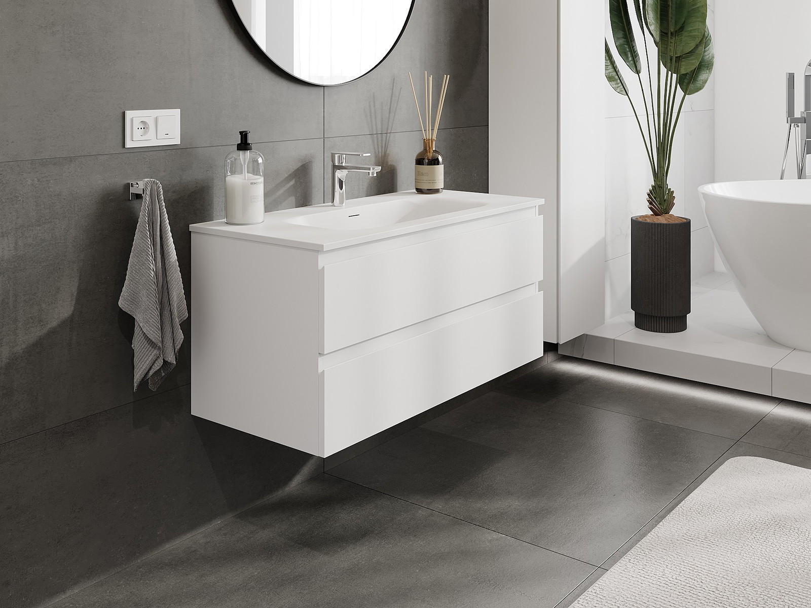 Naše modulární koupelnový nábytek lze kombinovat v různých barevných konfiguracích, což umožňuje plnou personalizaci. Můžete si vybrat jak vzhled, tak funkce jednotlivých prvků, což umožňuje přizpůsobit nábytek vašim stylovým a uživatelským preferencím.
