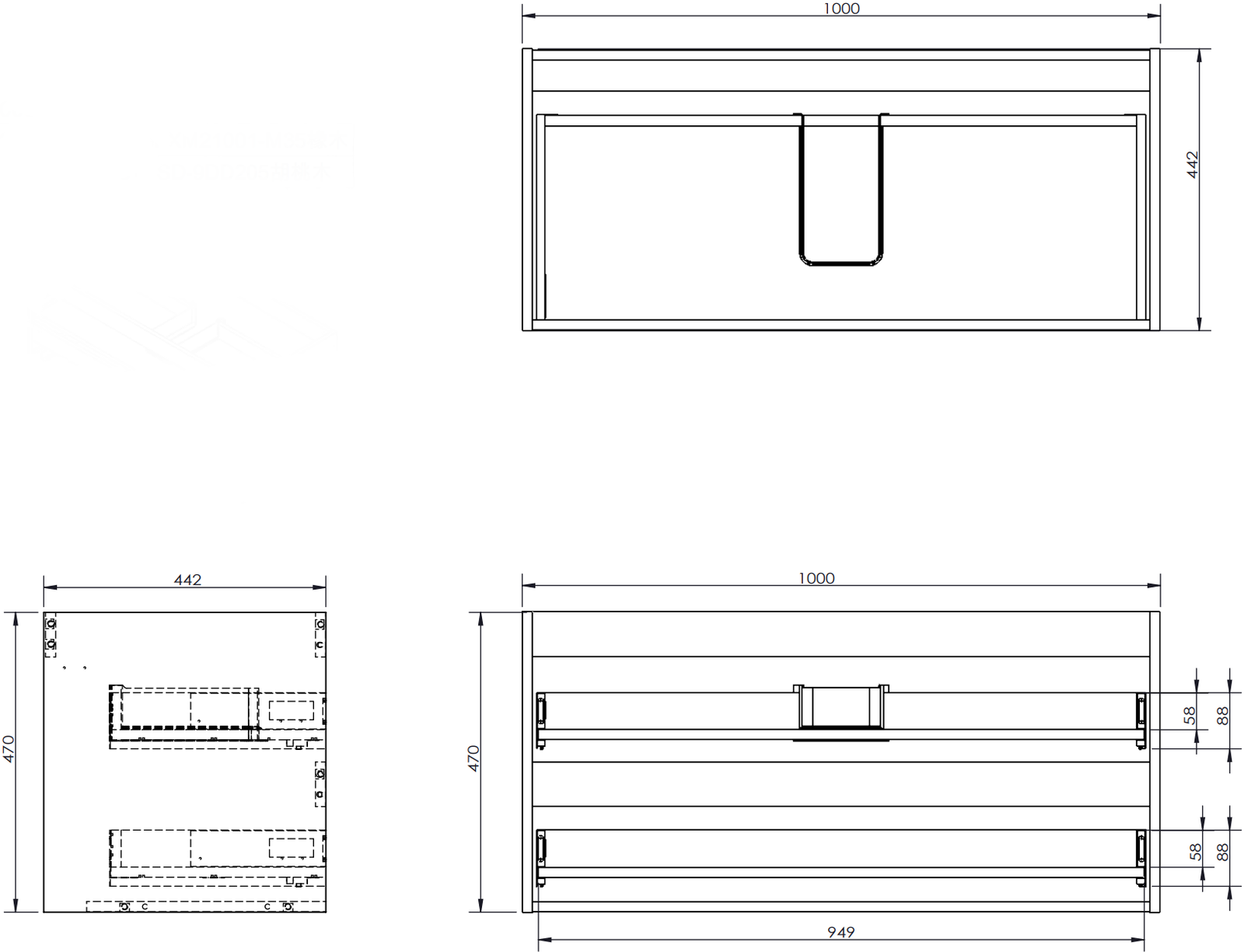 Výřez v zásuvce je navržen tak, aby pojmul sifon, který je nezbytný v instalacích umyvadlových. Díky tomu může být nábytek plně funkčně namontován, aniž by bylo nutné vzdát se prostoru v zásuvce ve prospěch instalace.