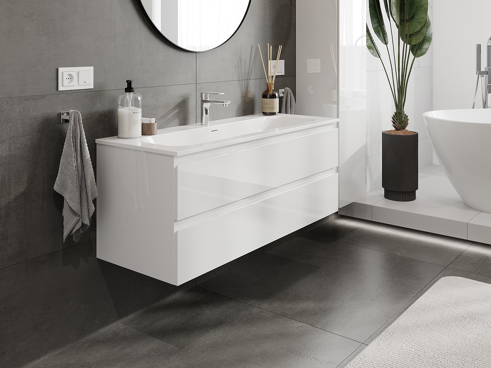 Naše modulární koupelnový nábytek lze kombinovat v různých barevných konfiguracích, což umožňuje plnou personalizaci. Můžete si vybrat jak vzhled, tak funkce jednotlivých prvků, což umožňuje přizpůsobit nábytek vašim stylovým a uživatelským preferencím.