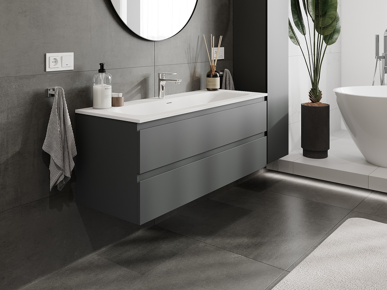 Naše modulární koupelnový nábytek lze kombinovat v různých barevných konfiguracích, což umožňuje plnou personalizaci. Můžete si vybrat jak vzhled, tak funkce jednotlivých prvků, což umožňuje přizpůsobit nábytek vašim stylovým a uživatelským preferencím.