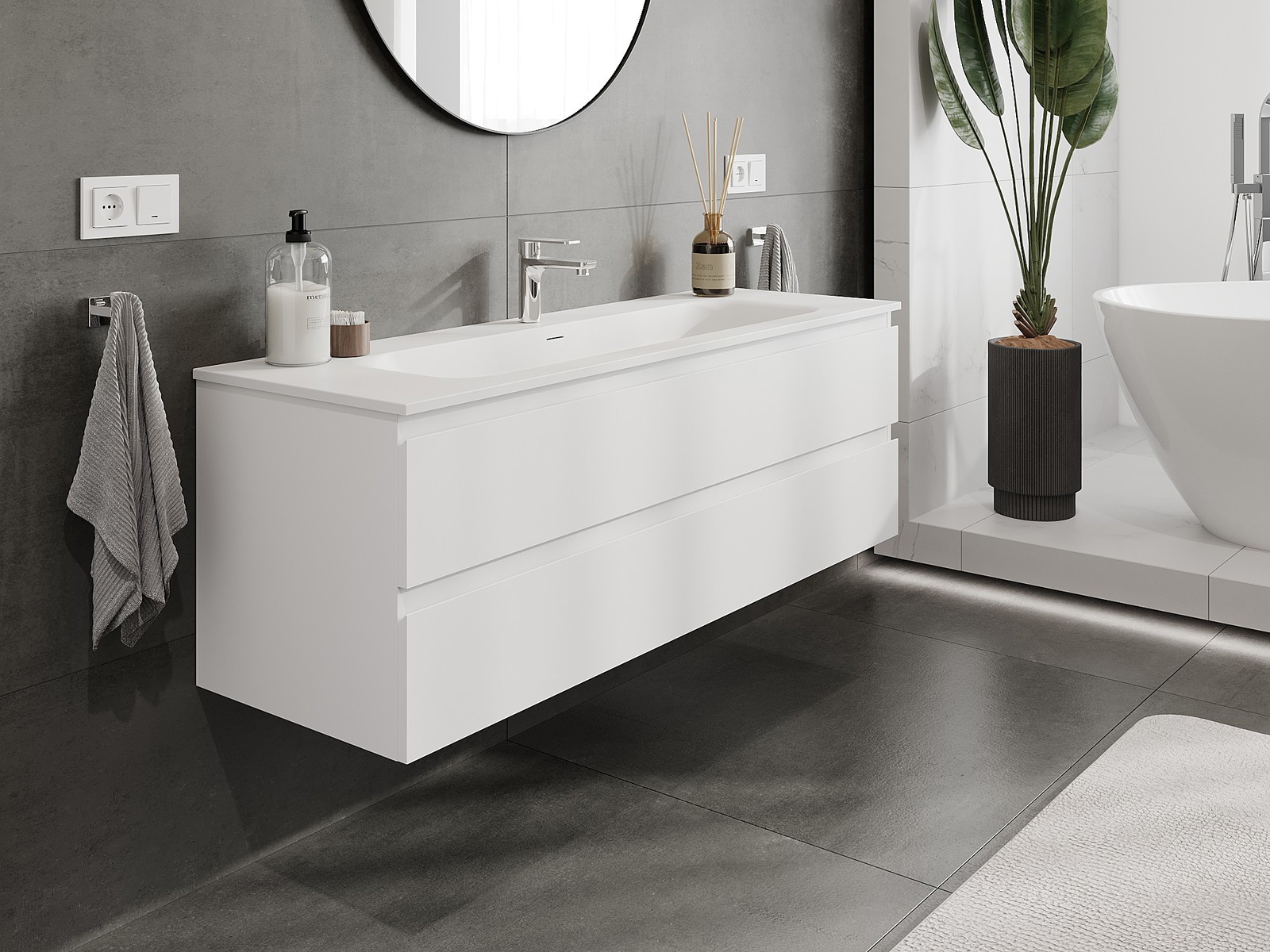 Naše modulární koupelnový nábytek lze kombinovat v různých barevných konfiguracích, což umožňuje plnou personalizaci. Můžete si vybrat jak vzhled, tak funkce jednotlivých prvků, což umožňuje přizpůsobit nábytek vašim stylovým a uživatelským preferencím.