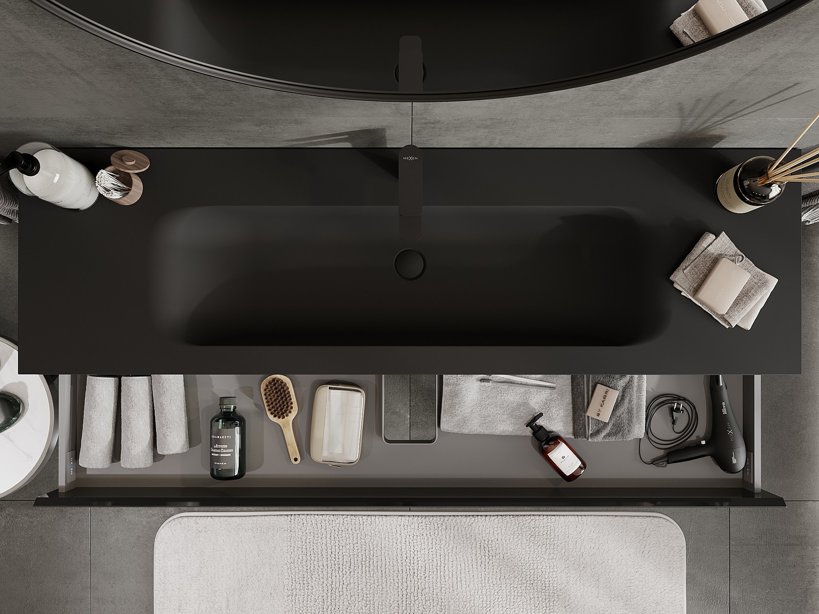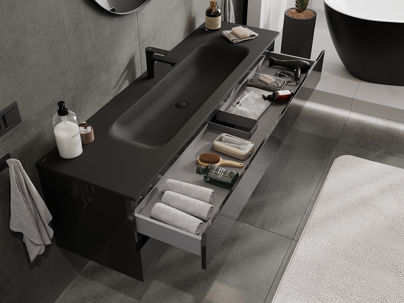 Výřez v zásuvce je navržen tak, aby pojmul sifon, který je nezbytný v instalacích umyvadlových. Díky tomu může být nábytek plně funkčně namontován, aniž by bylo nutné vzdát se prostoru v zásuvce ve prospěch instalace.