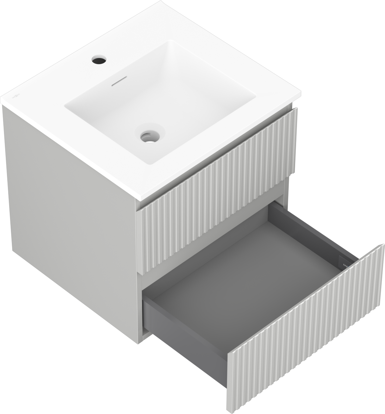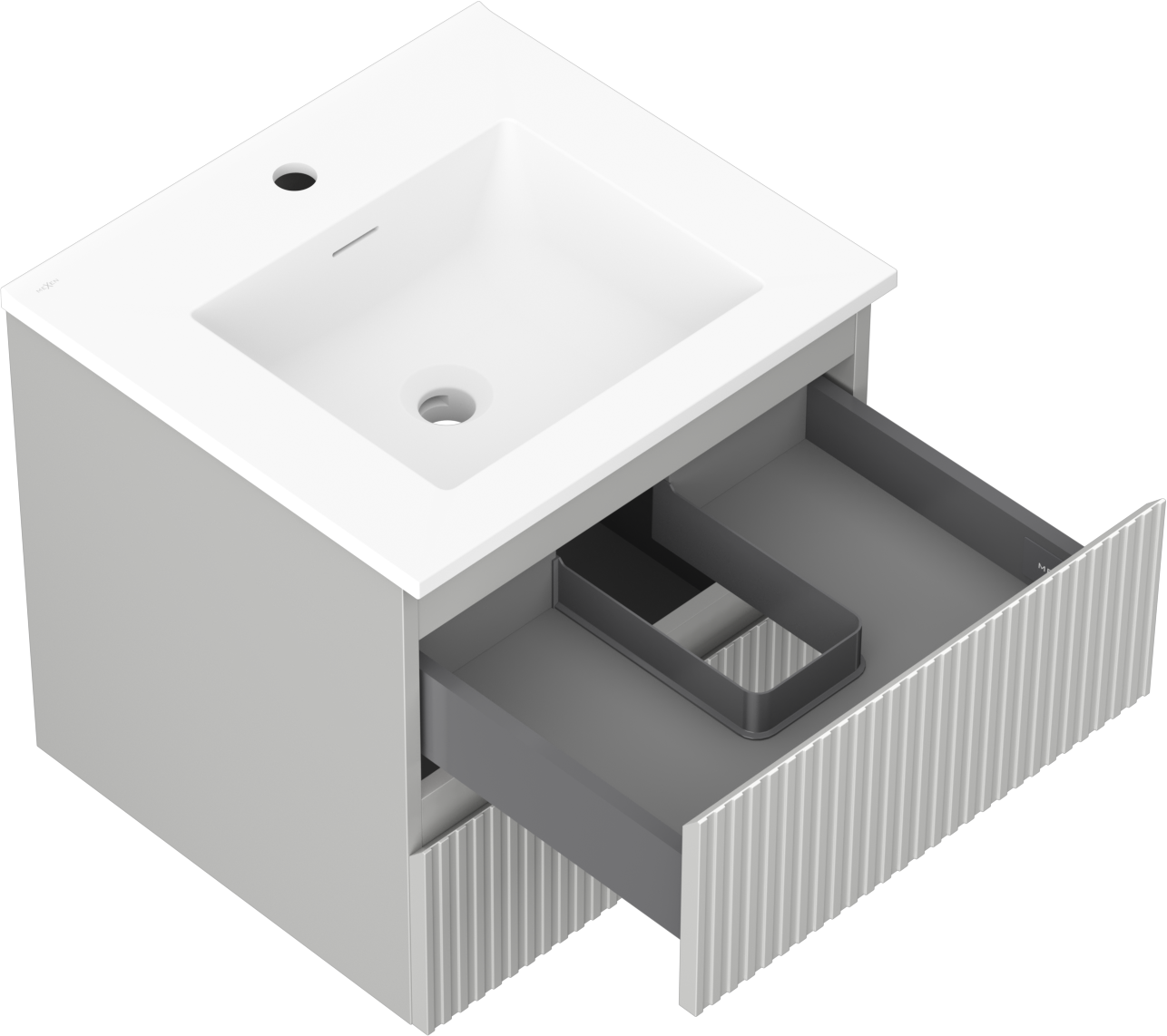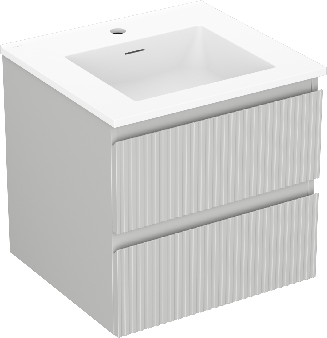 Mexen Rivel koupelnová skříňka 50 cm s umyvadlem Otis, 2 zásuvky, rýhovaná, šedá mat/bílá mat - 91A20-05047-2-BFF62-W18M01