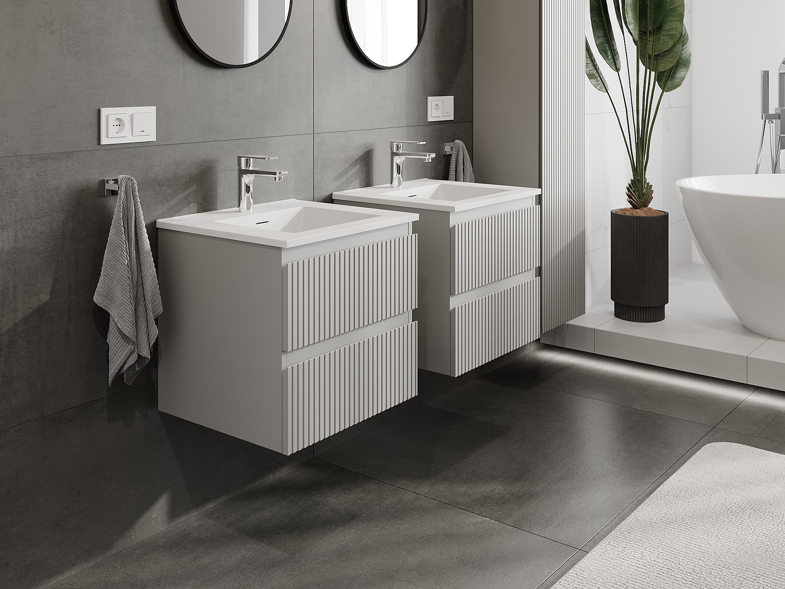 Naše modulární koupelnový nábytek lze kombinovat v různých barevných konfiguracích, což umožňuje plnou personalizaci. Můžete si vybrat jak vzhled, tak funkce jednotlivých prvků, což umožňuje přizpůsobit nábytek vašim stylovým a uživatelským preferencím.