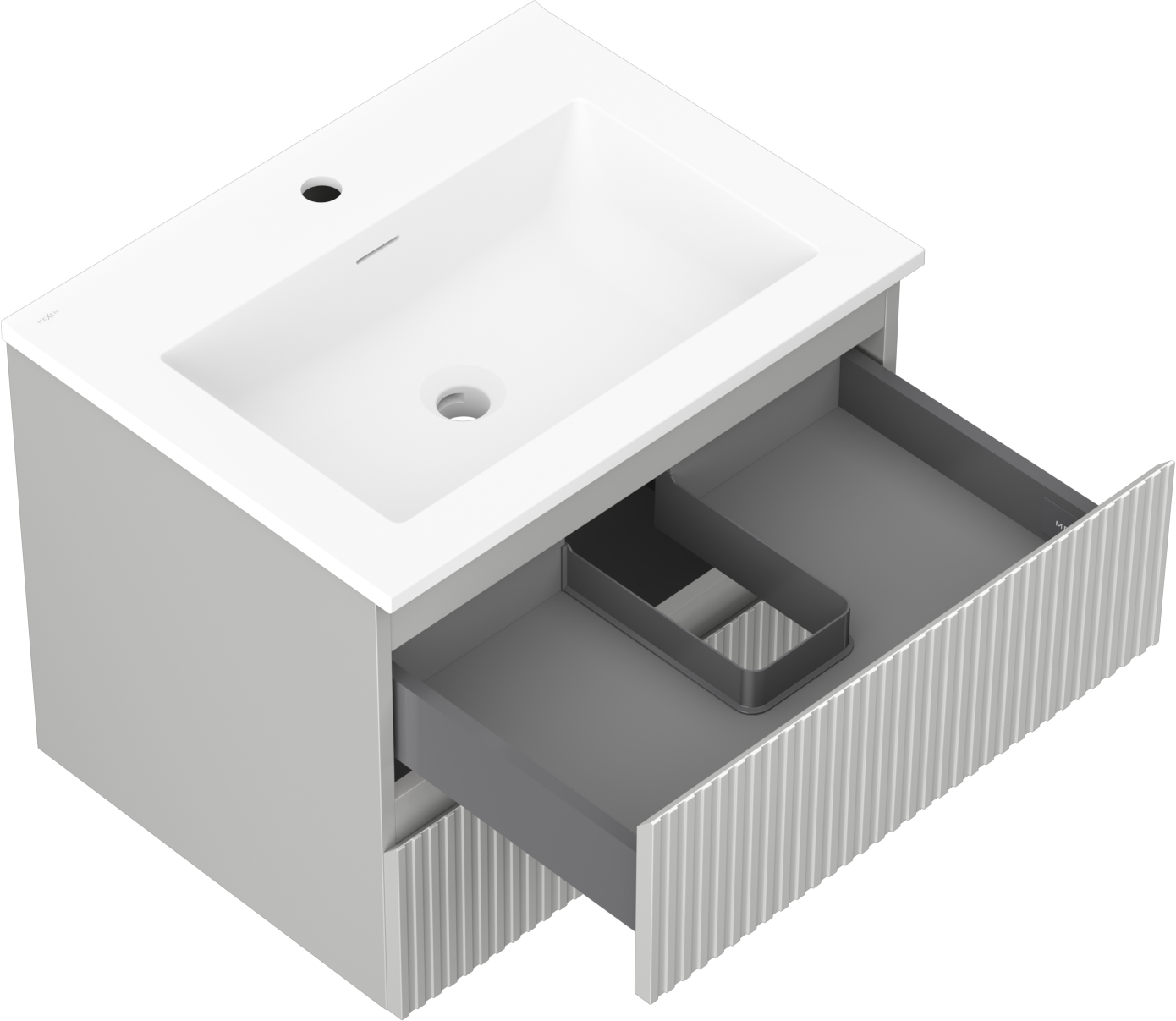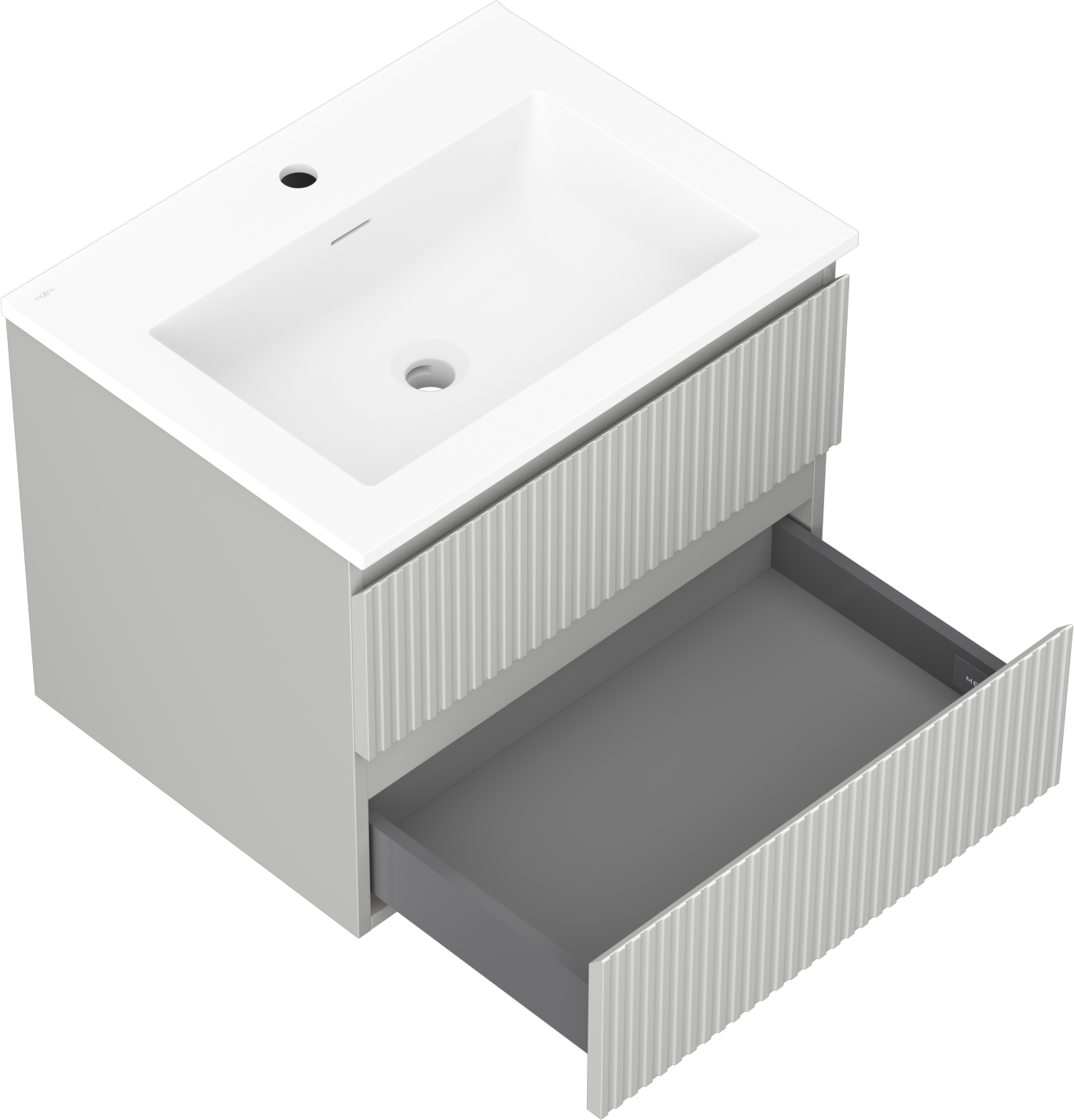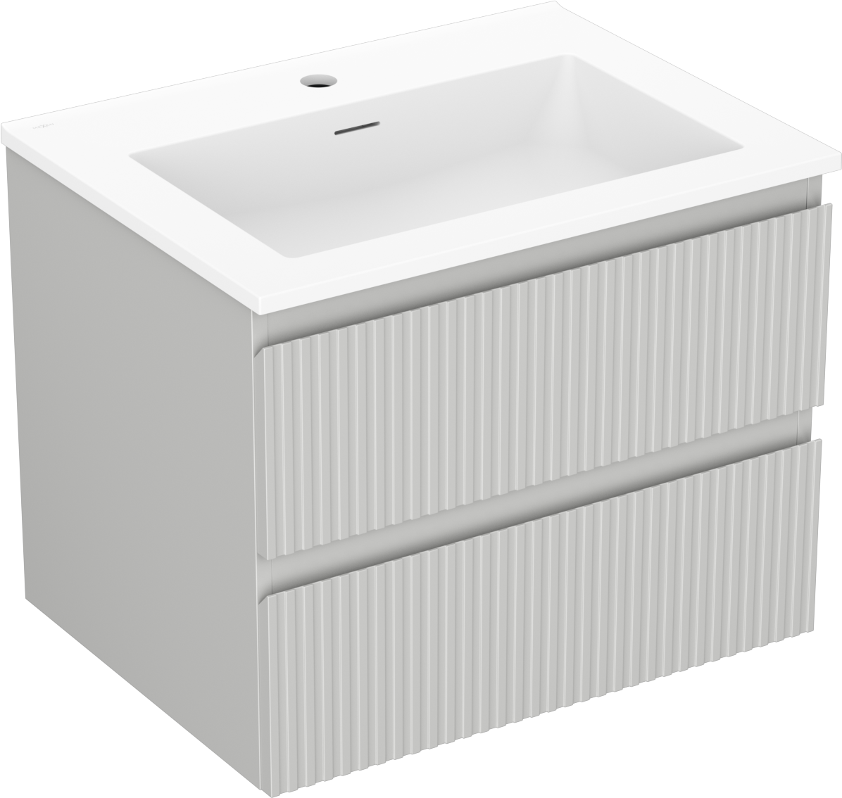 Mexen Rivel koupelnová skříňka 60 cm s umyvadlem Otis, 2 zásuvky, drážkovaná, šedá mat/bílá mat - 91A20-06047-2-BFF62-W18M01