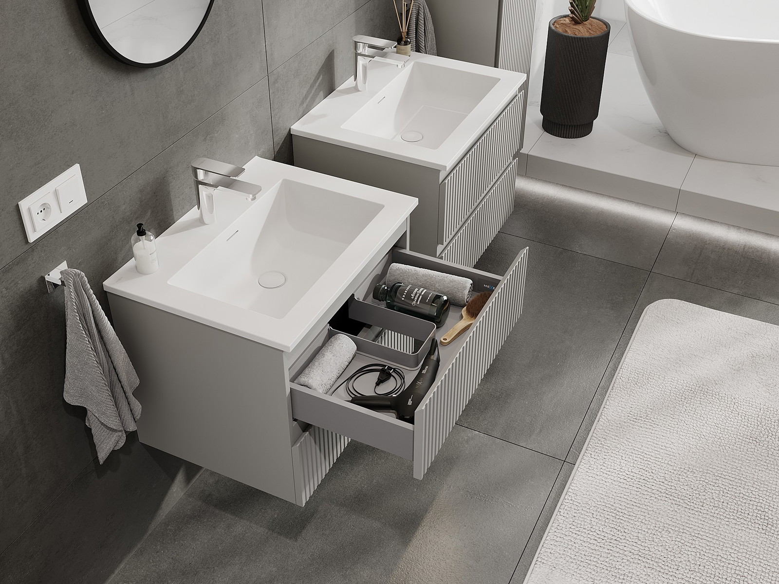 Korpus skříňky je dodáván zcela smontovaný, což znamená maximální pohodlí a úsporu času. Nemusíte ztrácet hodiny skládáním nábytku – stačí jej namontovat na vybrané místo v koupelně. Je to ideální řešení pro osoby, které si cení rychlé montáže a okamžitého efektu.