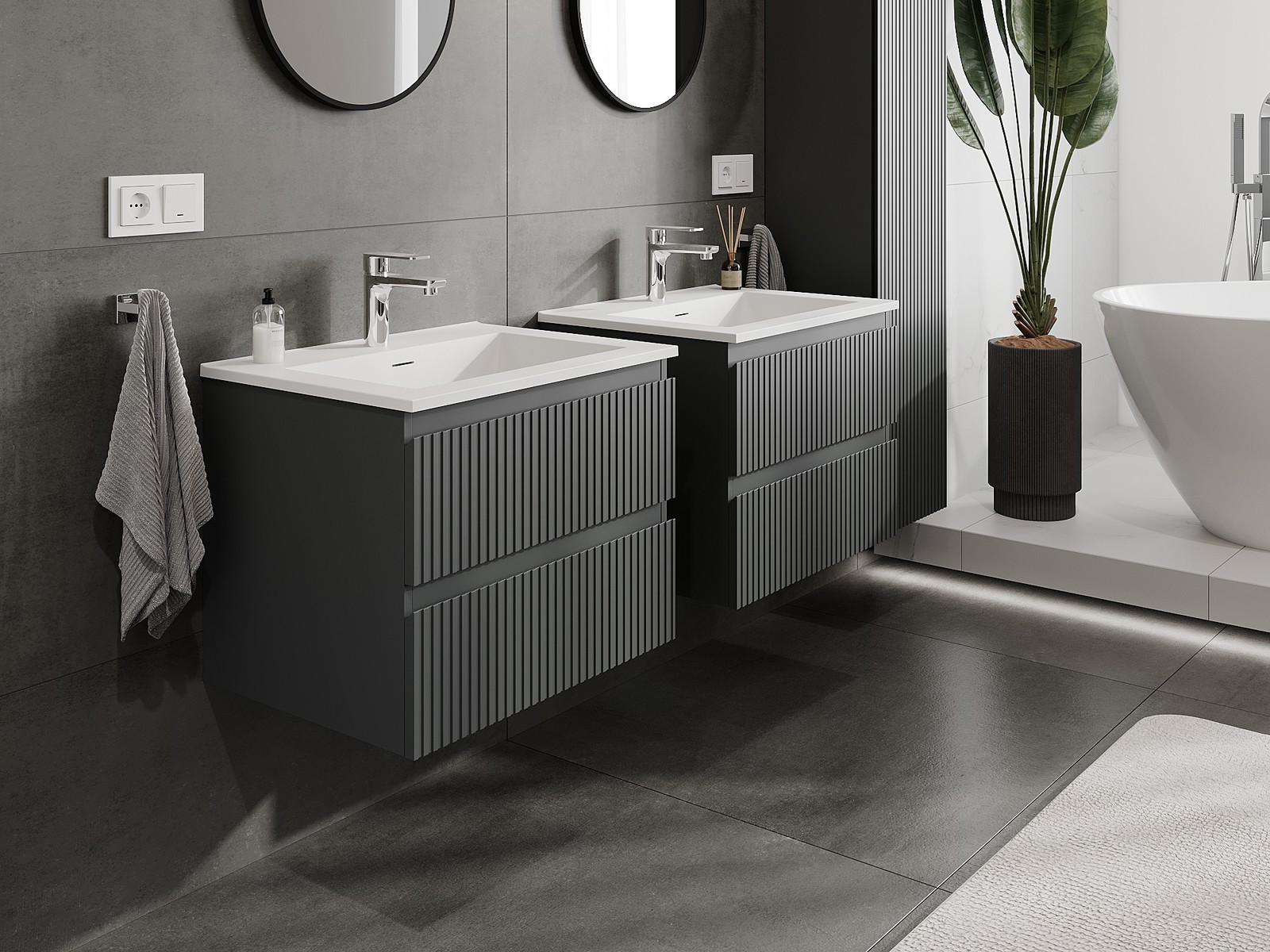 Naše modulární koupelnový nábytek lze kombinovat v různých barevných konfiguracích, což umožňuje plnou personalizaci. Můžete si vybrat jak vzhled, tak funkce jednotlivých prvků, což umožňuje přizpůsobit nábytek vašim stylovým a uživatelským preferencím.