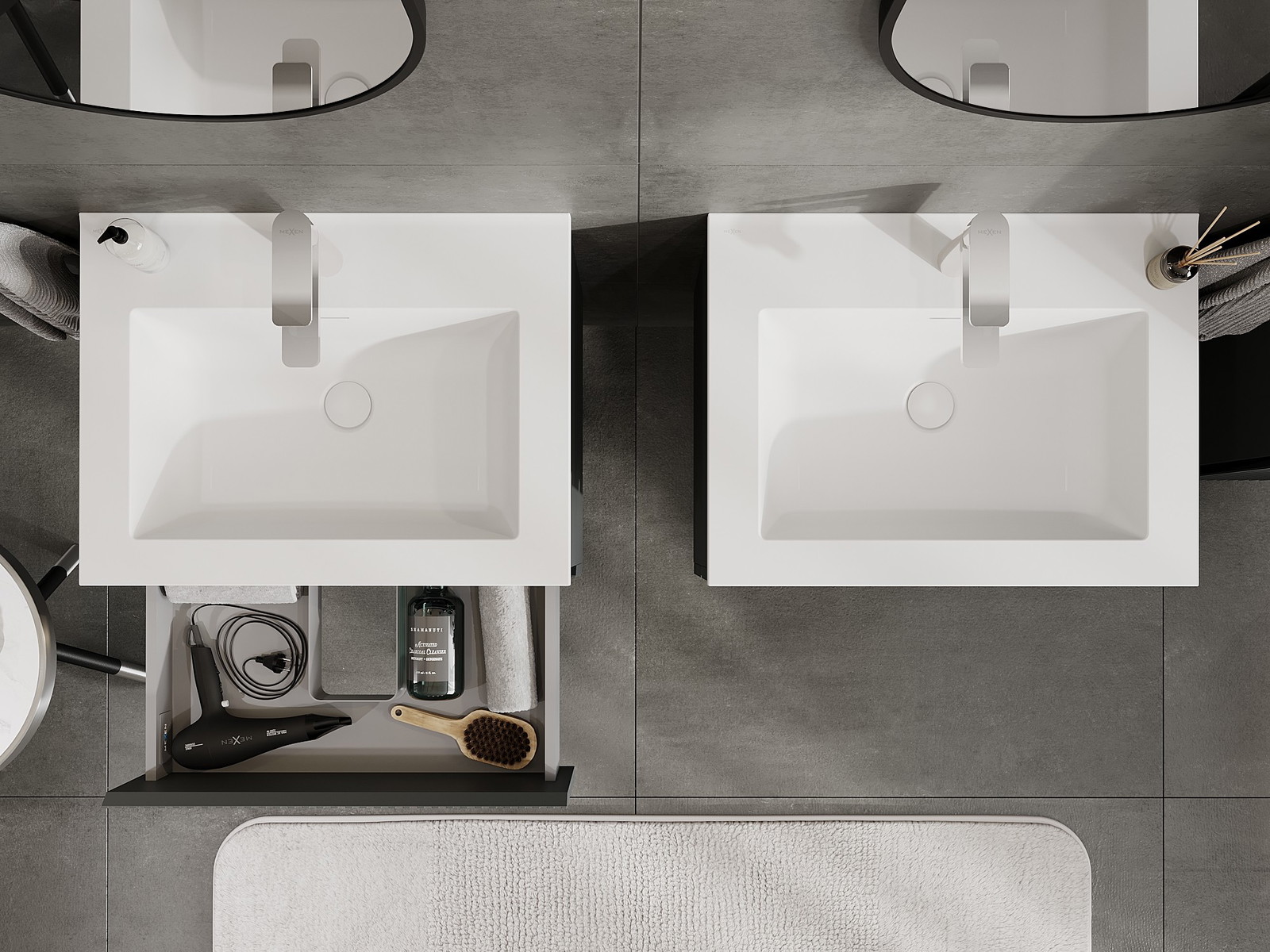 Výřez v zásuvce je navržen tak, aby pojmul sifon, který je nezbytný v instalacích umyvadlových. Díky tomu může být nábytek plně funkčně namontován, aniž by bylo nutné vzdát se prostoru v zásuvce ve prospěch instalace.