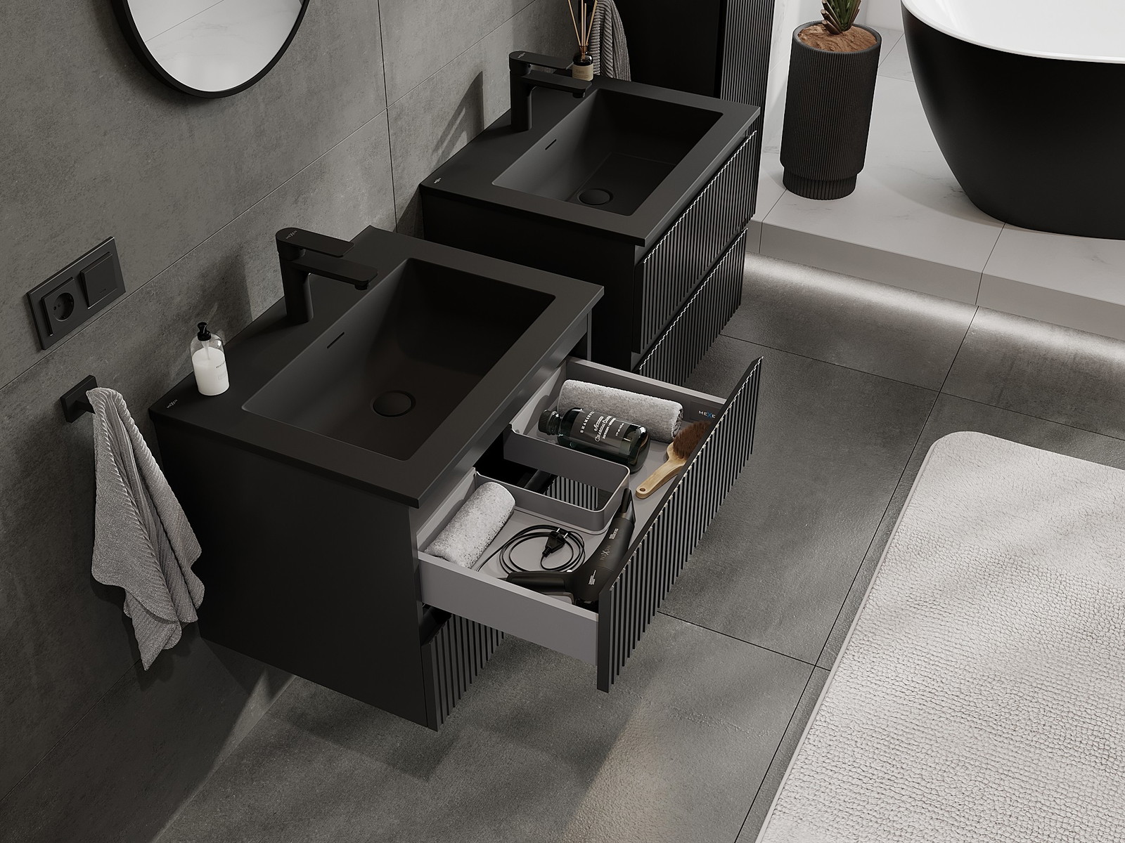 Korpus skříňky je dodáván zcela smontovaný, což znamená maximální pohodlí a úsporu času. Nemusíte ztrácet hodiny skládáním nábytku – stačí jej namontovat na vybrané místo v koupelně. Je to ideální řešení pro osoby, které si cení rychlé montáže a okamžitého efektu.