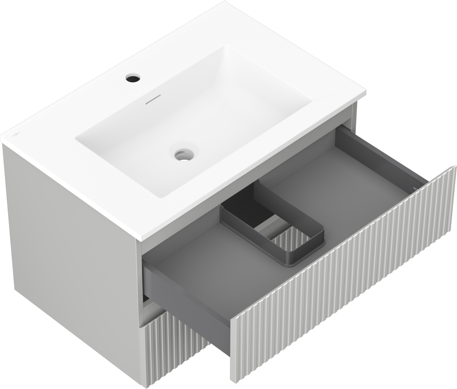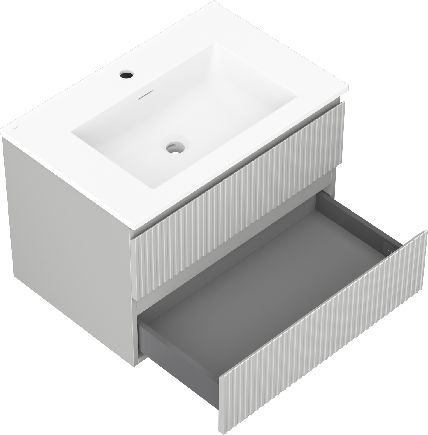 Mexen Rivel koupelnová skříňka 70 cm s umyvadlem Otis, 2 zásuvky, drážkovaná, šedá mat/bílá mat - 91A20-07047-2-BFF62-W18M01