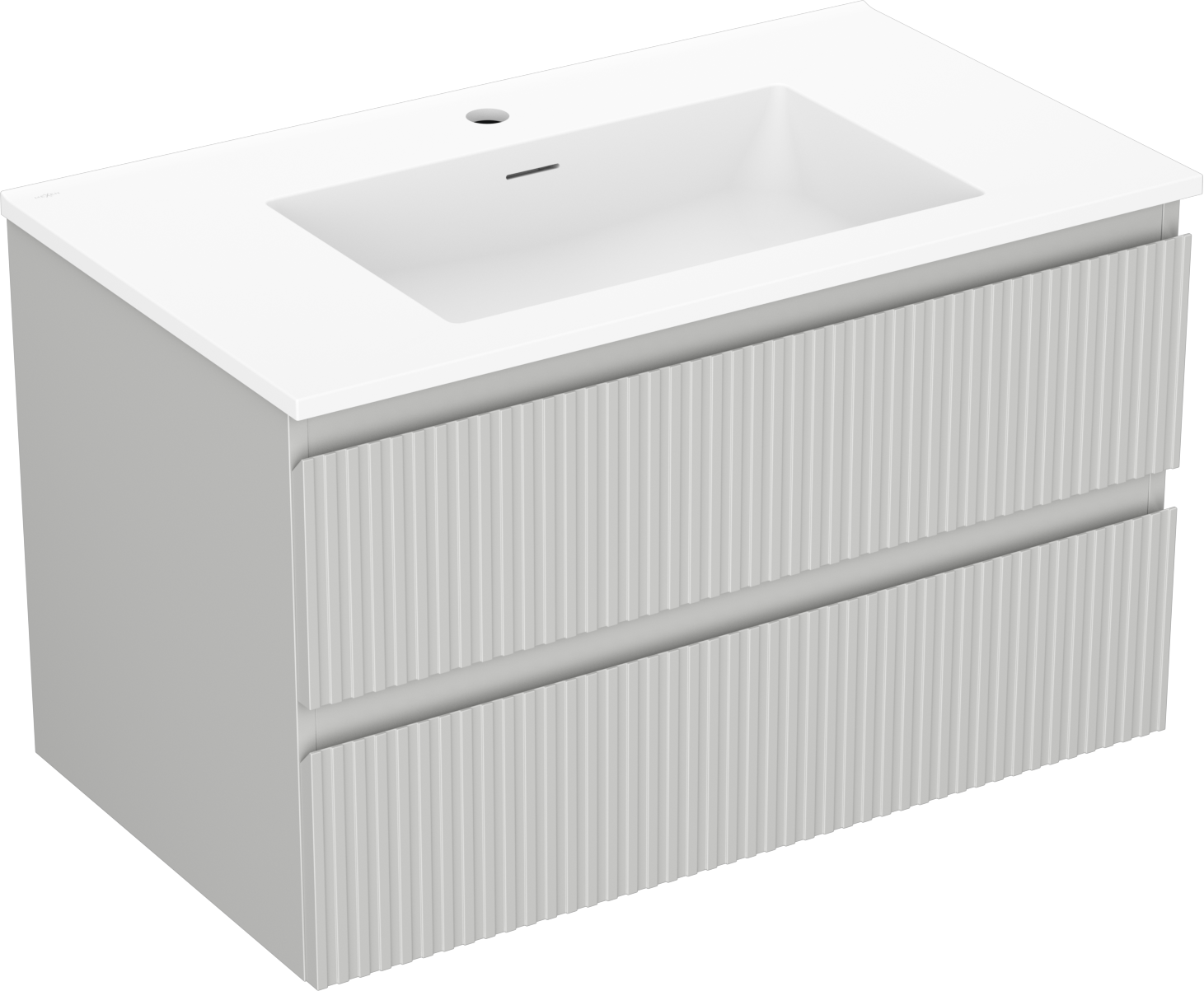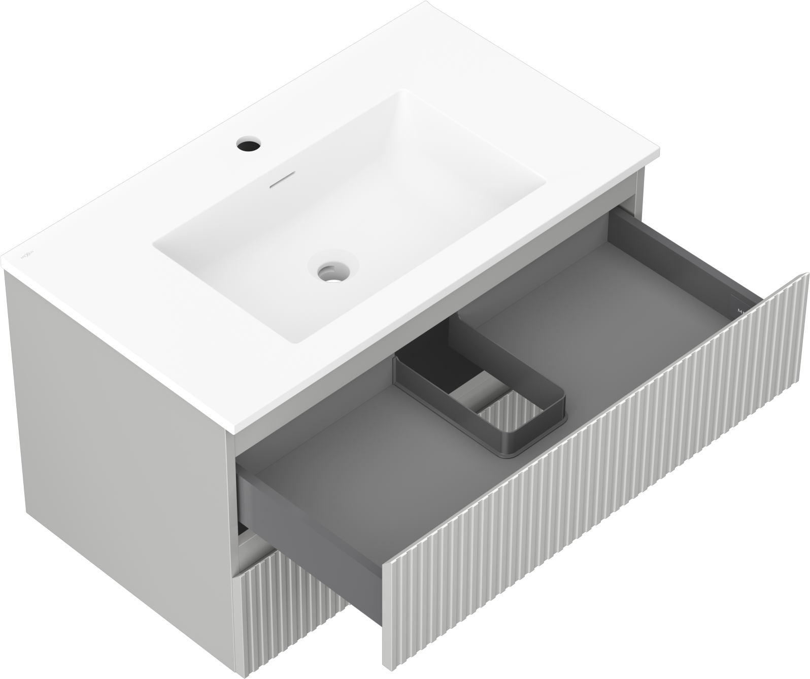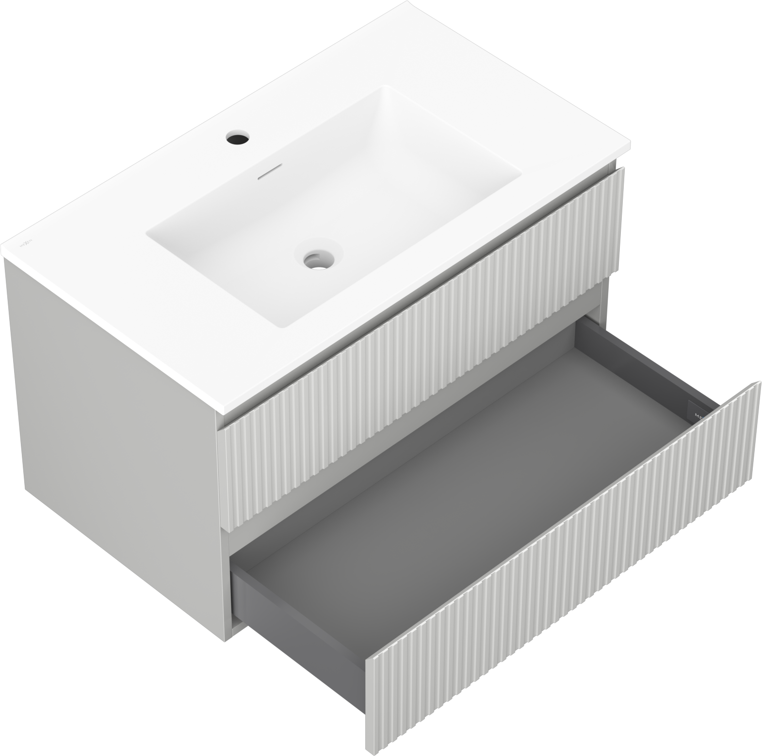 Mexen Rivel koupelnová skříňka 80 cm s umyvadlem Otis, 2 zásuvky, rýhovaná, šedá mat/bílá mat - 91A20-08047-2-BFF62-W18M01
