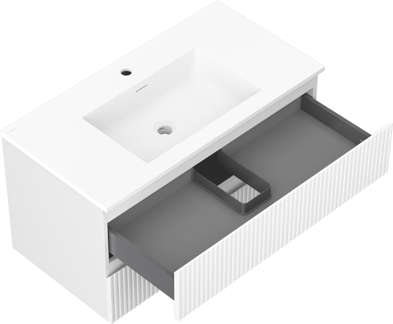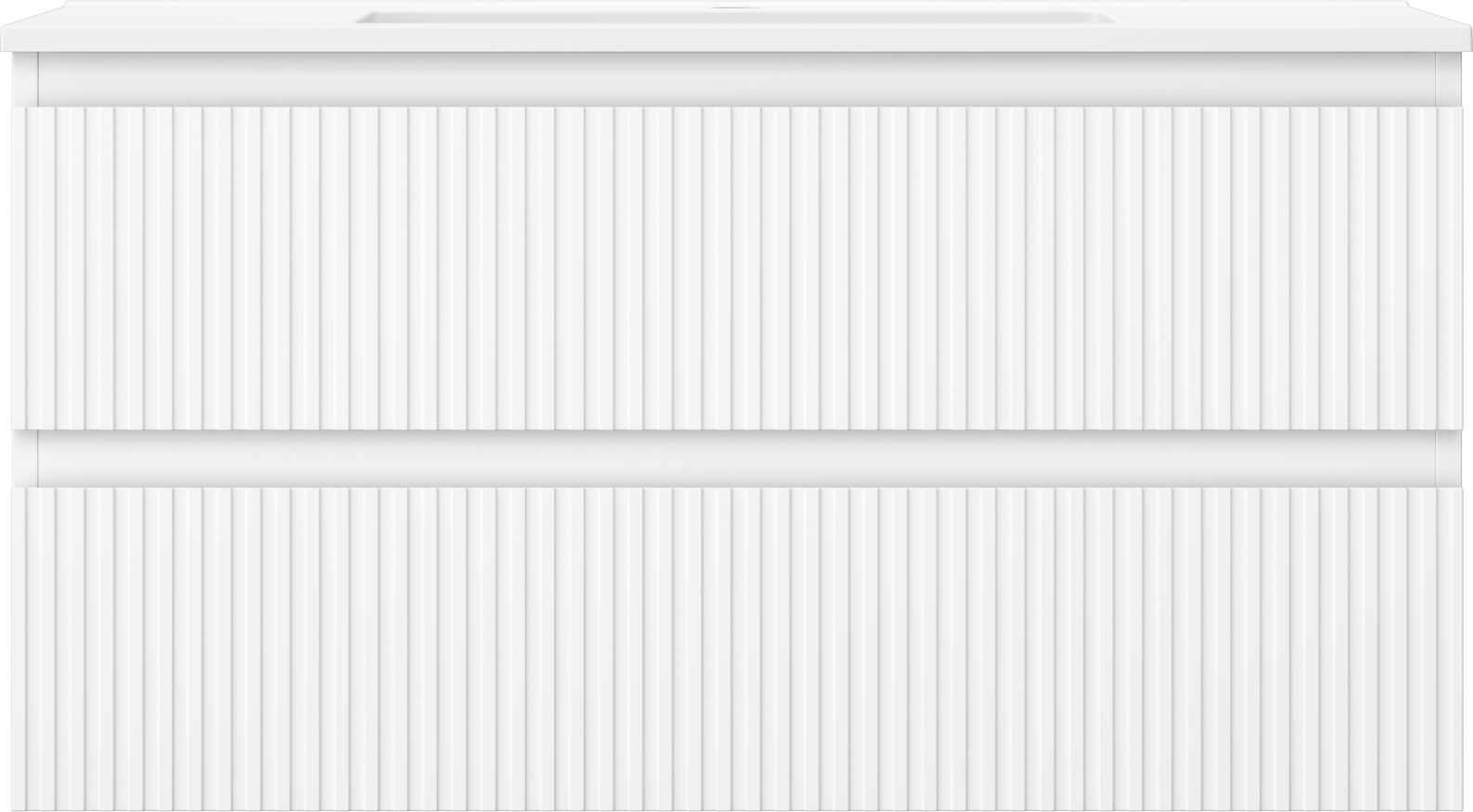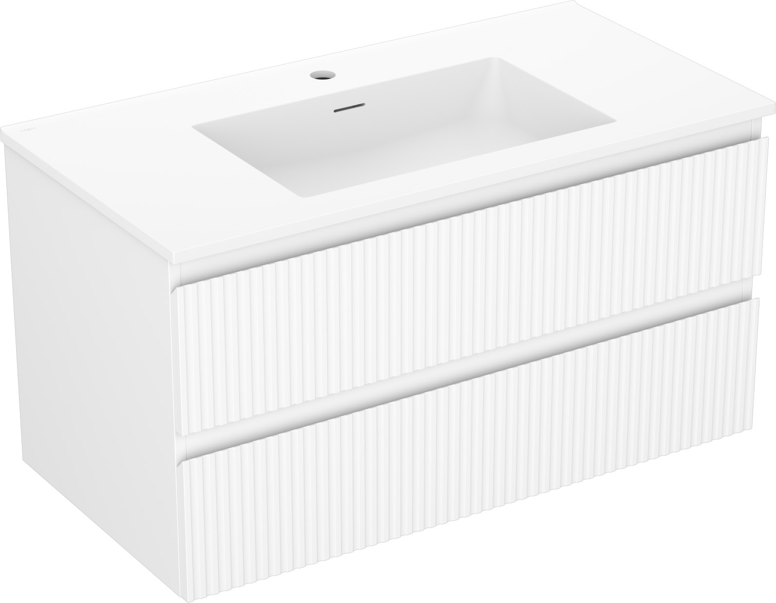 Mexen Rivel koupelnová skříňka 90 cm s umyvadlem Otis, 2 zásuvky, rýhovaná, bílá mat - 91A20-09047-2-BFF01-W18M01