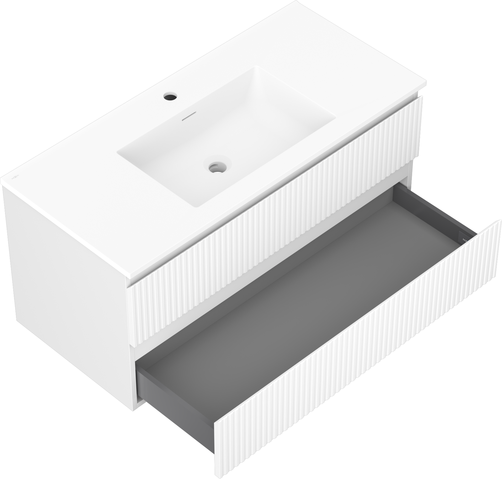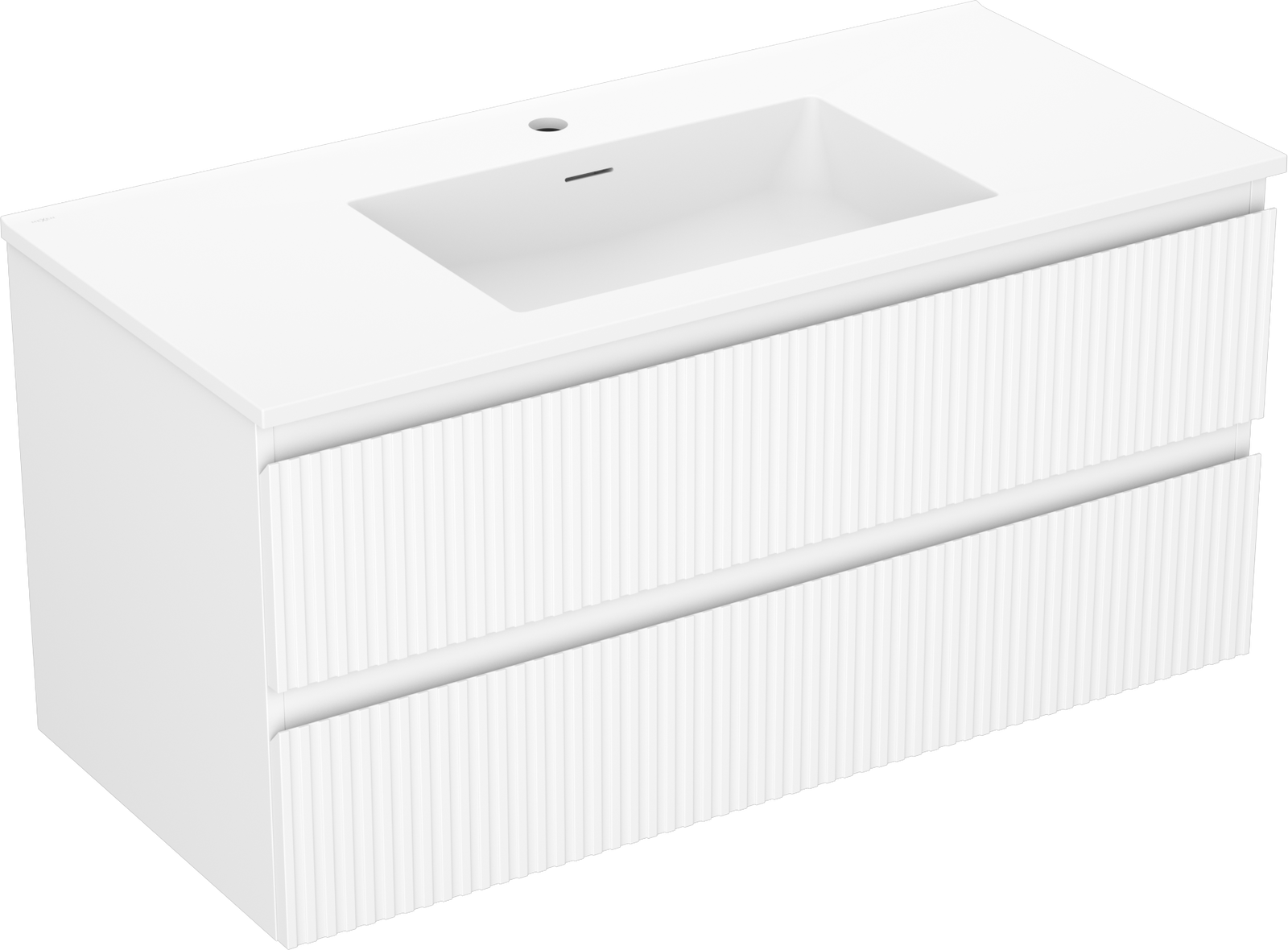 Mexen Rivel koupelnová skříňka 100 cm s umyvadlem Otis, 2 zásuvky, drážkovaná, bílá mat - 91A20-10047-2-BFF01-W18M01