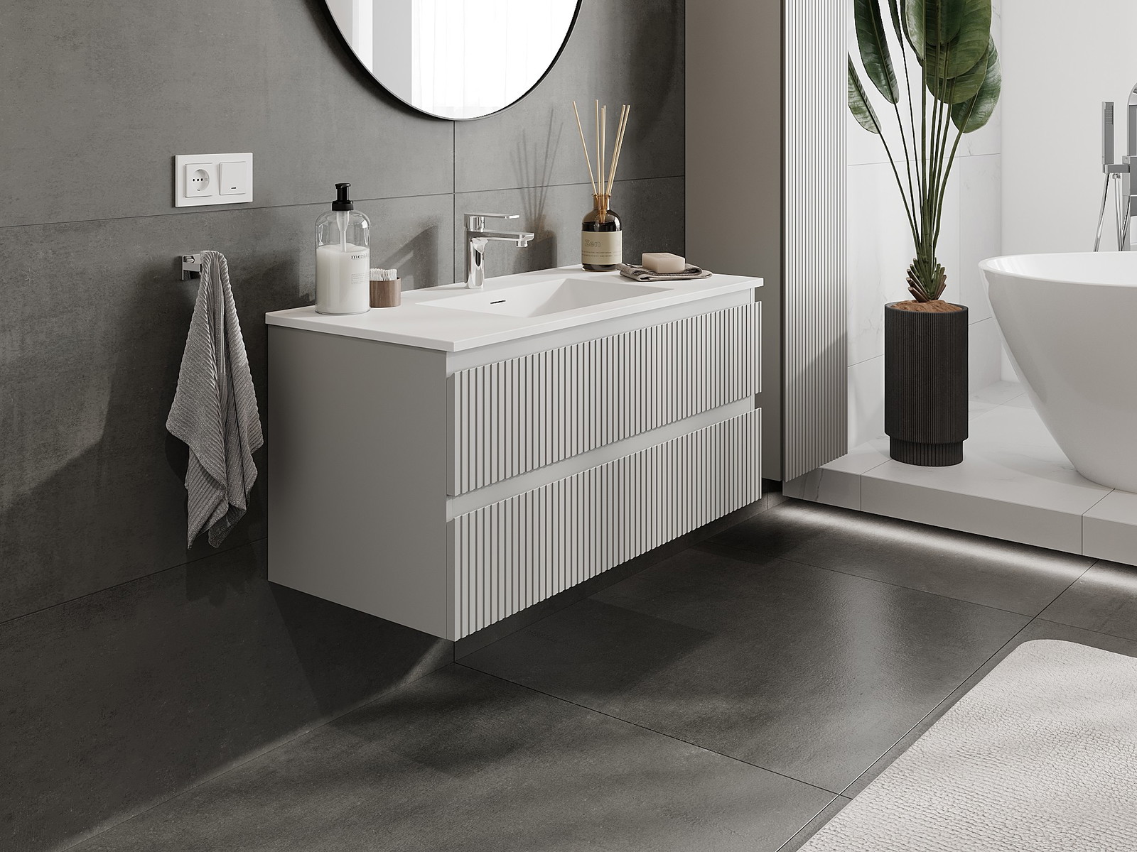 Naše modulární koupelnový nábytek lze kombinovat v různých barevných konfiguracích, což umožňuje plnou personalizaci. Můžete si vybrat jak vzhled, tak funkce jednotlivých prvků, což umožňuje přizpůsobit nábytek vašim stylovým a uživatelským preferencím.