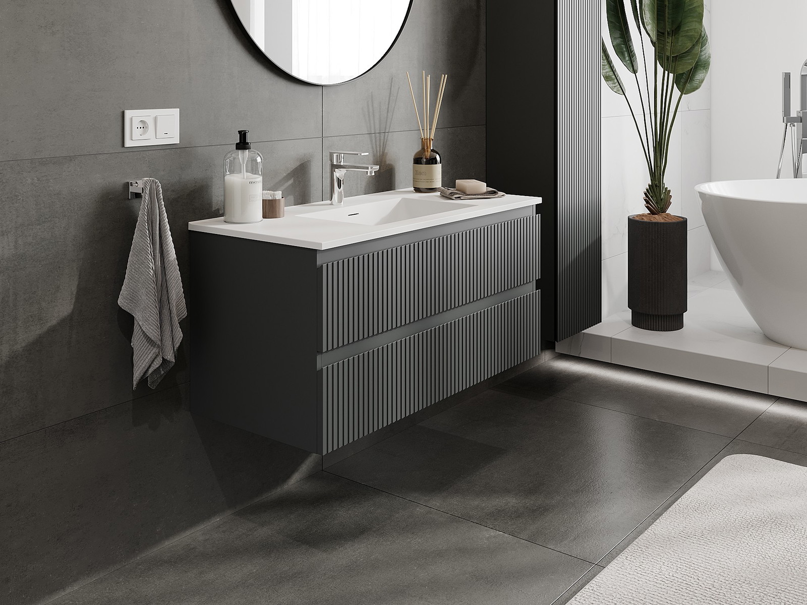 Naše modulární koupelnový nábytek lze kombinovat v různých barevných konfiguracích, což umožňuje plnou personalizaci. Můžete si vybrat jak vzhled, tak funkce jednotlivých prvků, což umožňuje přizpůsobit nábytek vašim stylovým a uživatelským preferencím.