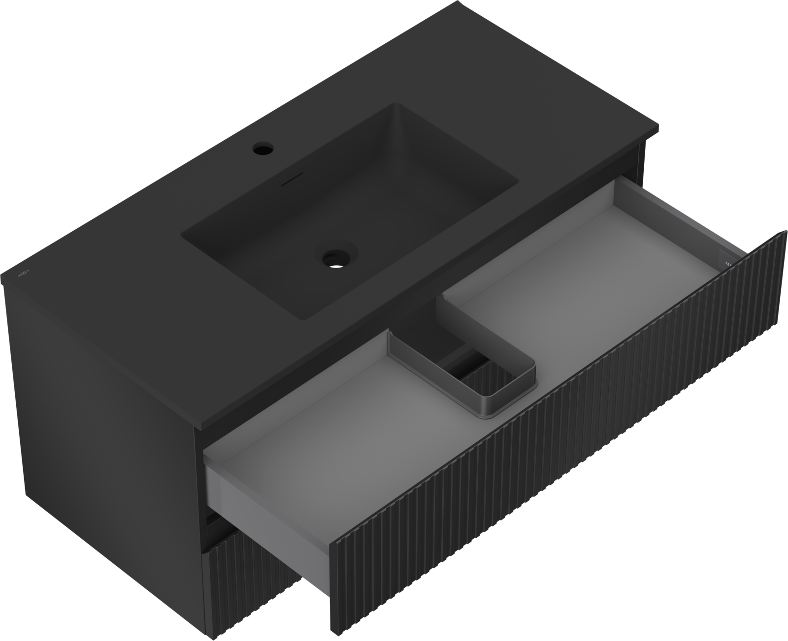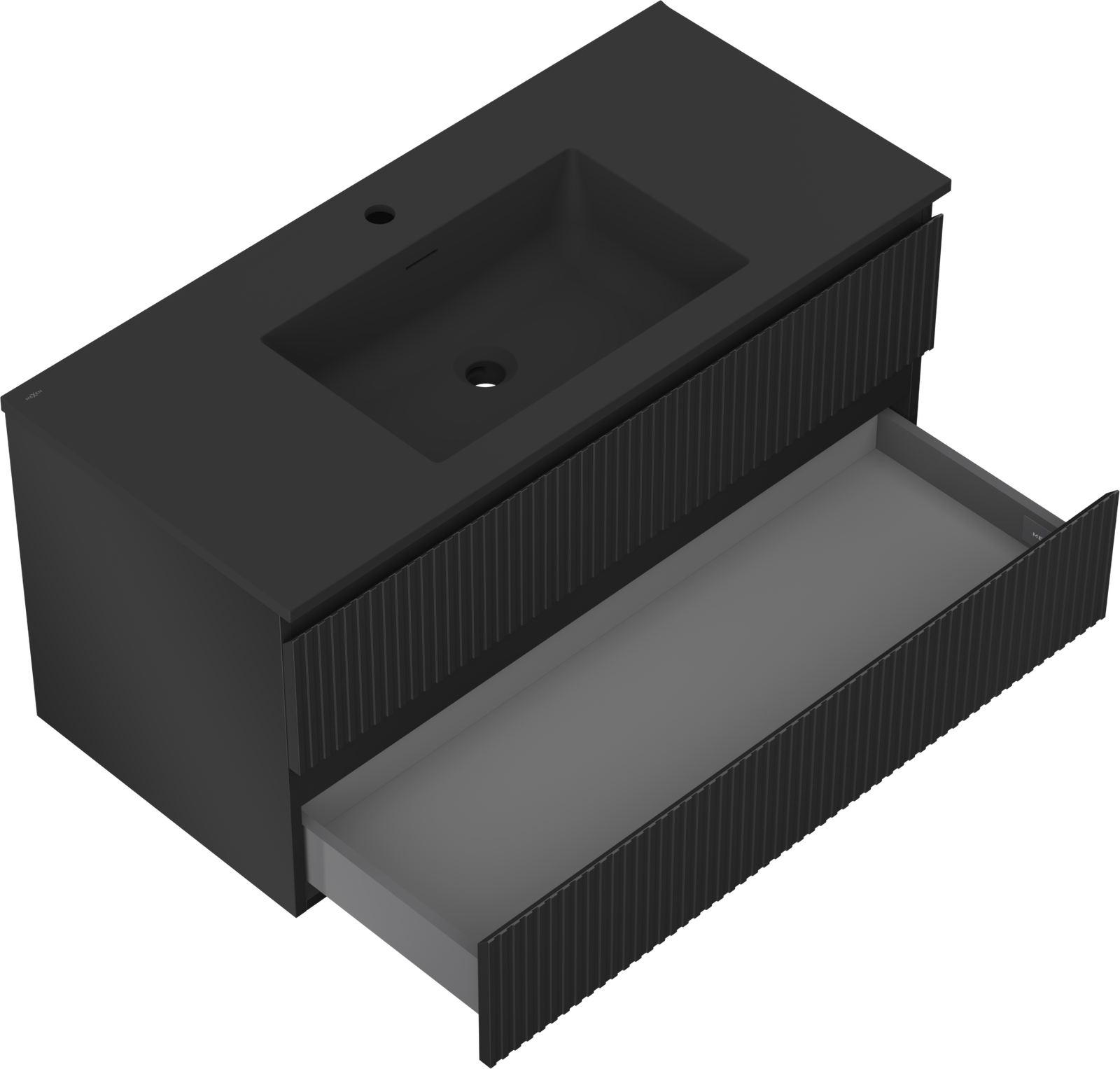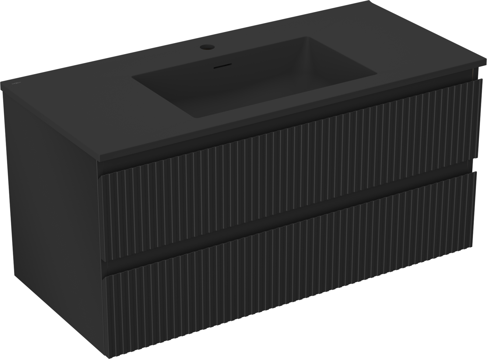 Mexen Rivel koupelnová skříňka 100 cm s umyvadlem Otis, 2 zásuvky, drážkovaná, černá mat - 91A20-10047-2-BFF71-W18M71