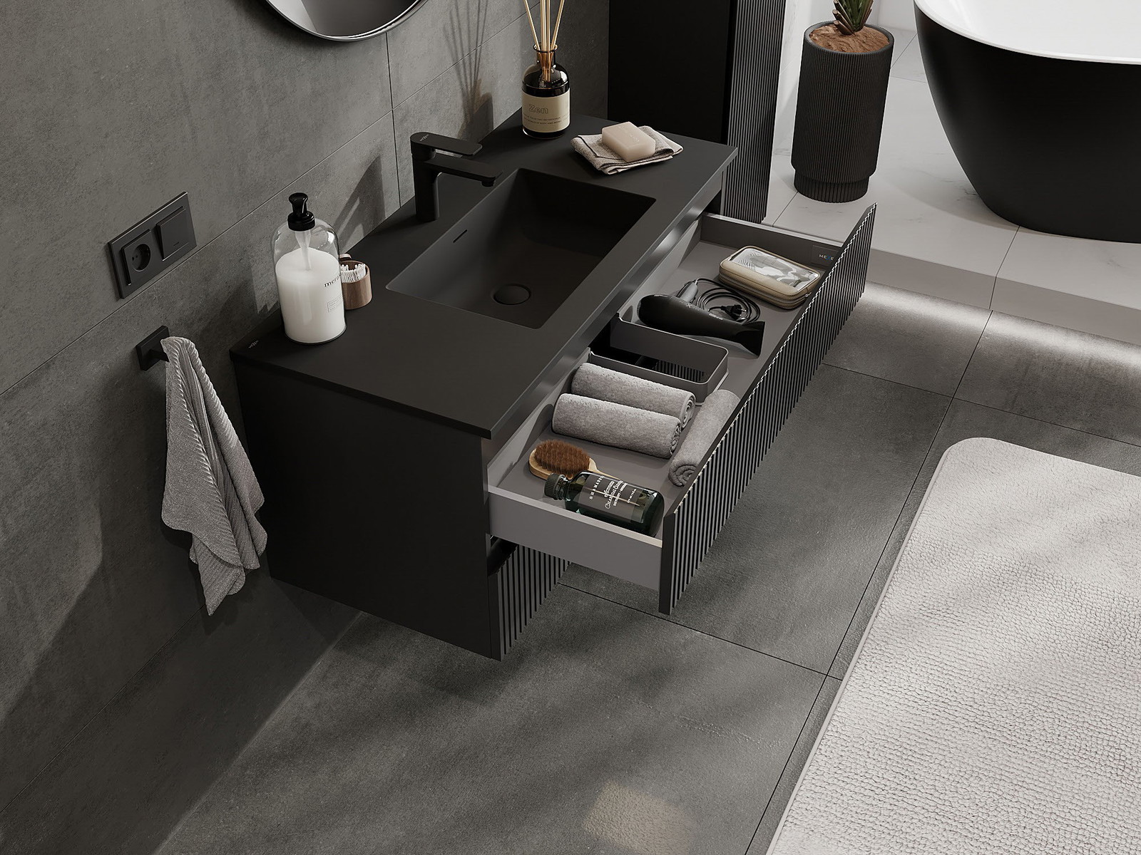 Výřez v zásuvce je navržen tak, aby pojmul sifon, který je nezbytný v instalacích umyvadlových. Díky tomu může být nábytek plně funkčně namontován, aniž by bylo nutné vzdát se prostoru v zásuvce ve prospěch instalace.