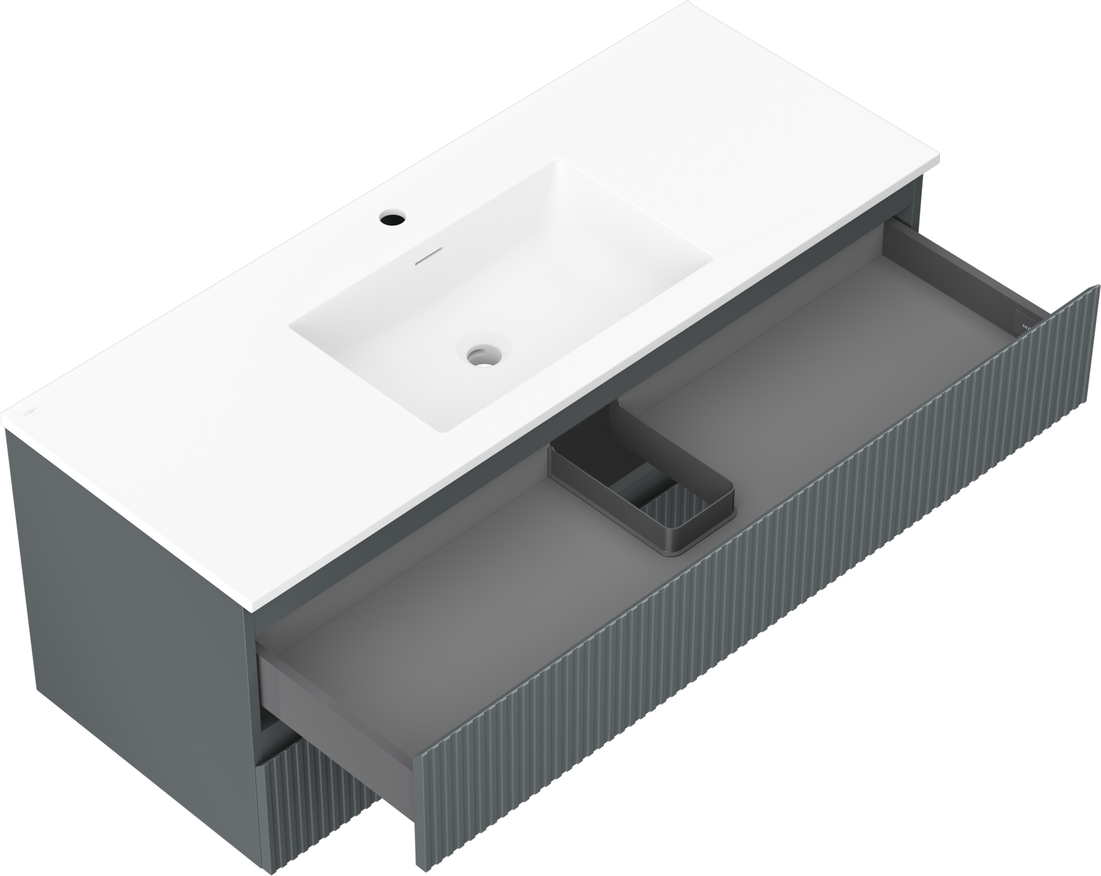 Mexen Rivel koupelnová skříňka 120 cm s umyvadlem Otis, 2 zásuvky, rýhovaná, grafit mat/bílá mat -