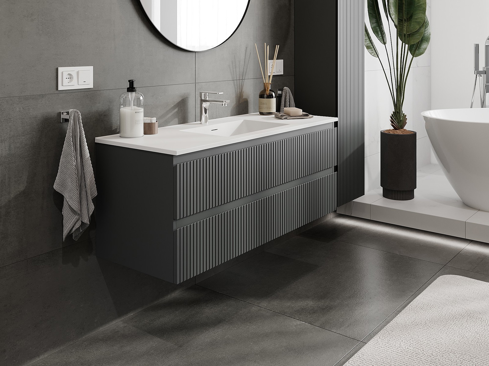Naše modulární koupelnový nábytek lze kombinovat v různých barevných konfiguracích, což umožňuje plnou personalizaci. Můžete si vybrat jak vzhled, tak funkce jednotlivých prvků, což umožňuje přizpůsobit nábytek vašim stylovým a uživatelským preferencím.