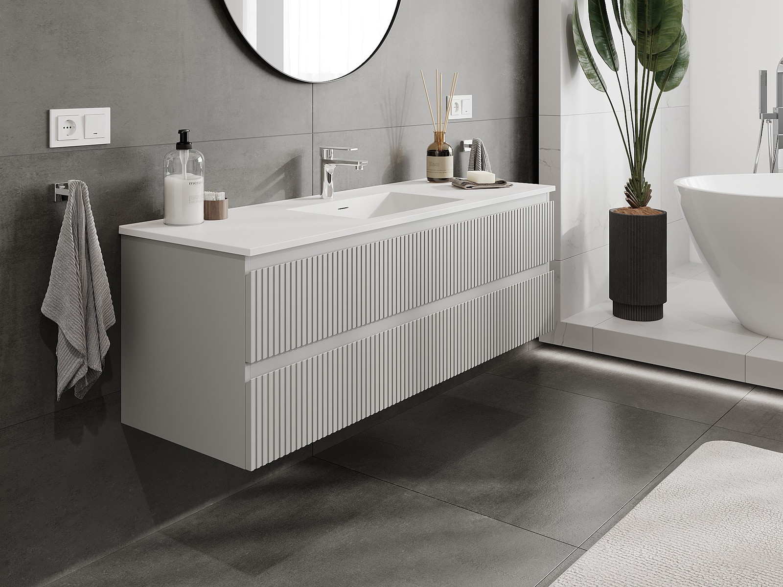 Naše modulární koupelnový nábytek lze kombinovat v různých barevných konfiguracích, což umožňuje plnou personalizaci. Můžete si vybrat jak vzhled, tak funkce jednotlivých prvků, což umožňuje přizpůsobit nábytek vašim stylovým a uživatelským preferencím.