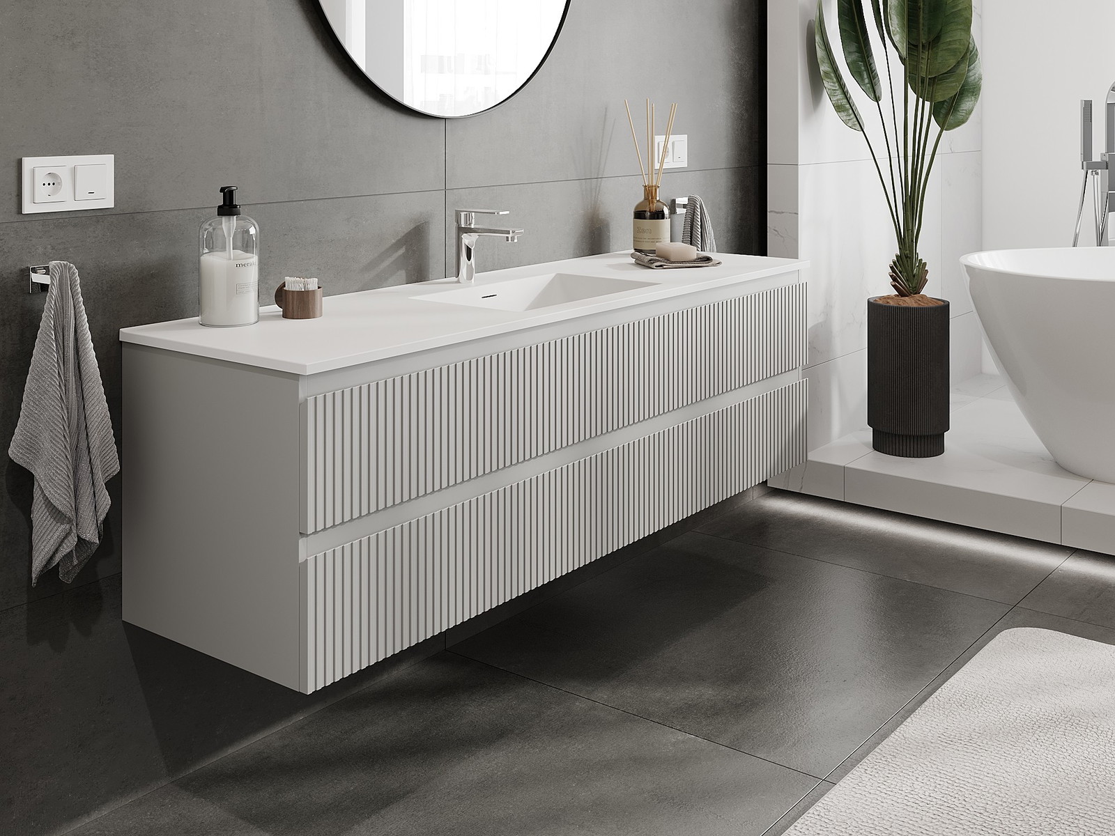 Naše modulární koupelnový nábytek lze kombinovat v různých barevných konfiguracích, což umožňuje plnou personalizaci. Můžete si vybrat jak vzhled, tak funkce jednotlivých prvků, což umožňuje přizpůsobit nábytek vašim stylovým a uživatelským preferencím.