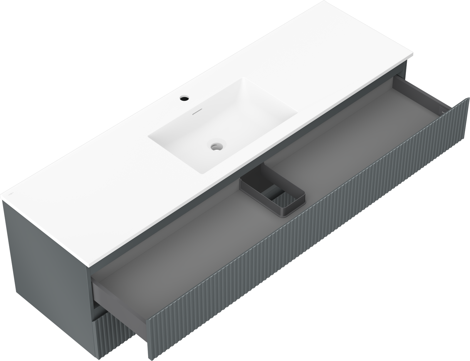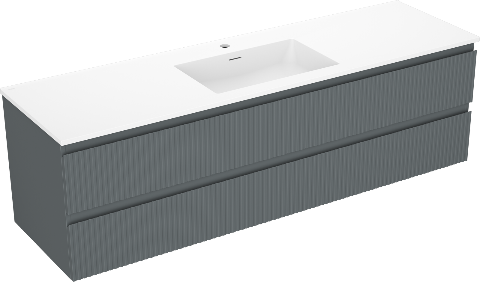 Mexen Rivel koupelnová skříňka 160 cm s umyvadlem Otis, 2 zásuvky, drážkovaná, grafit mat/bílá mat -