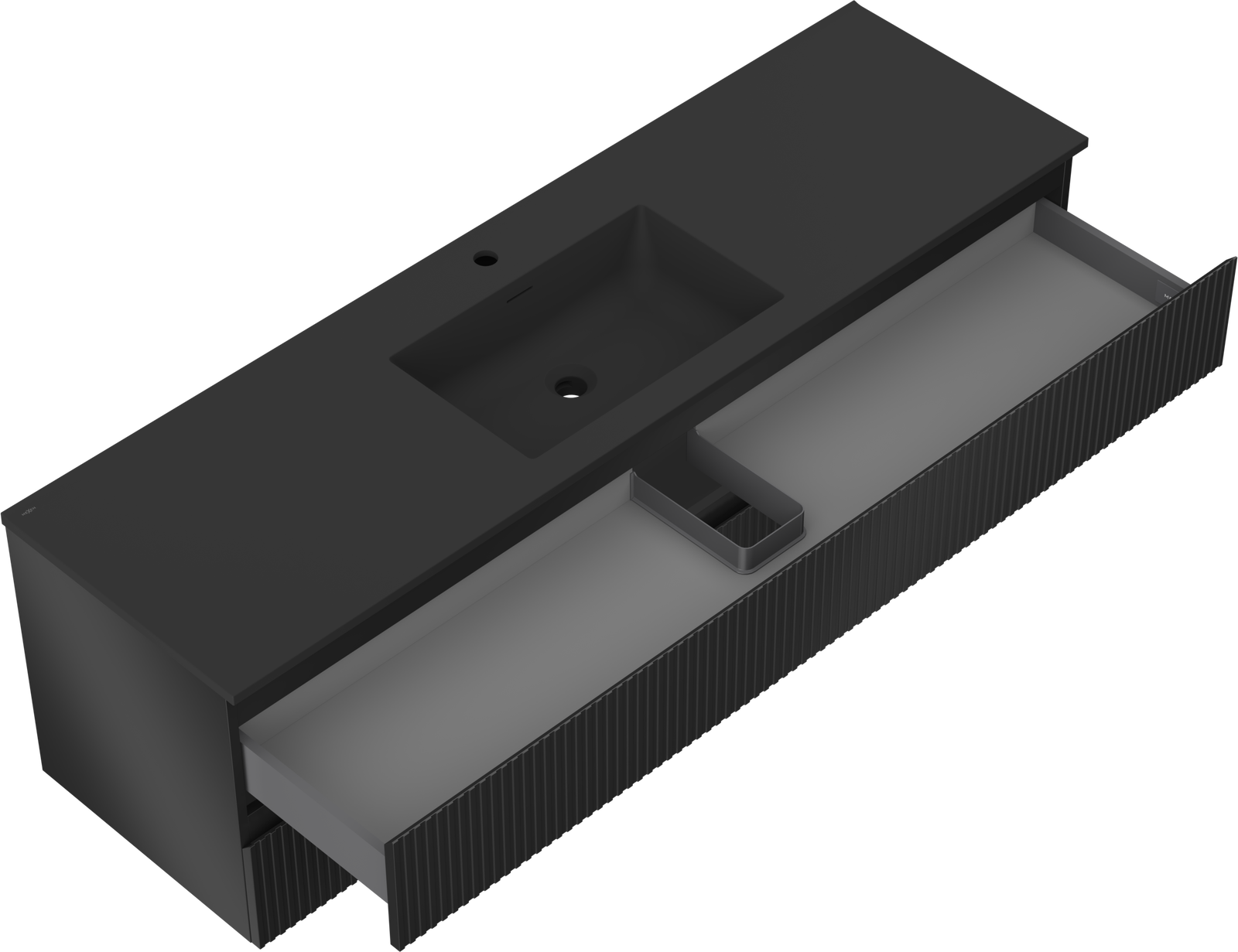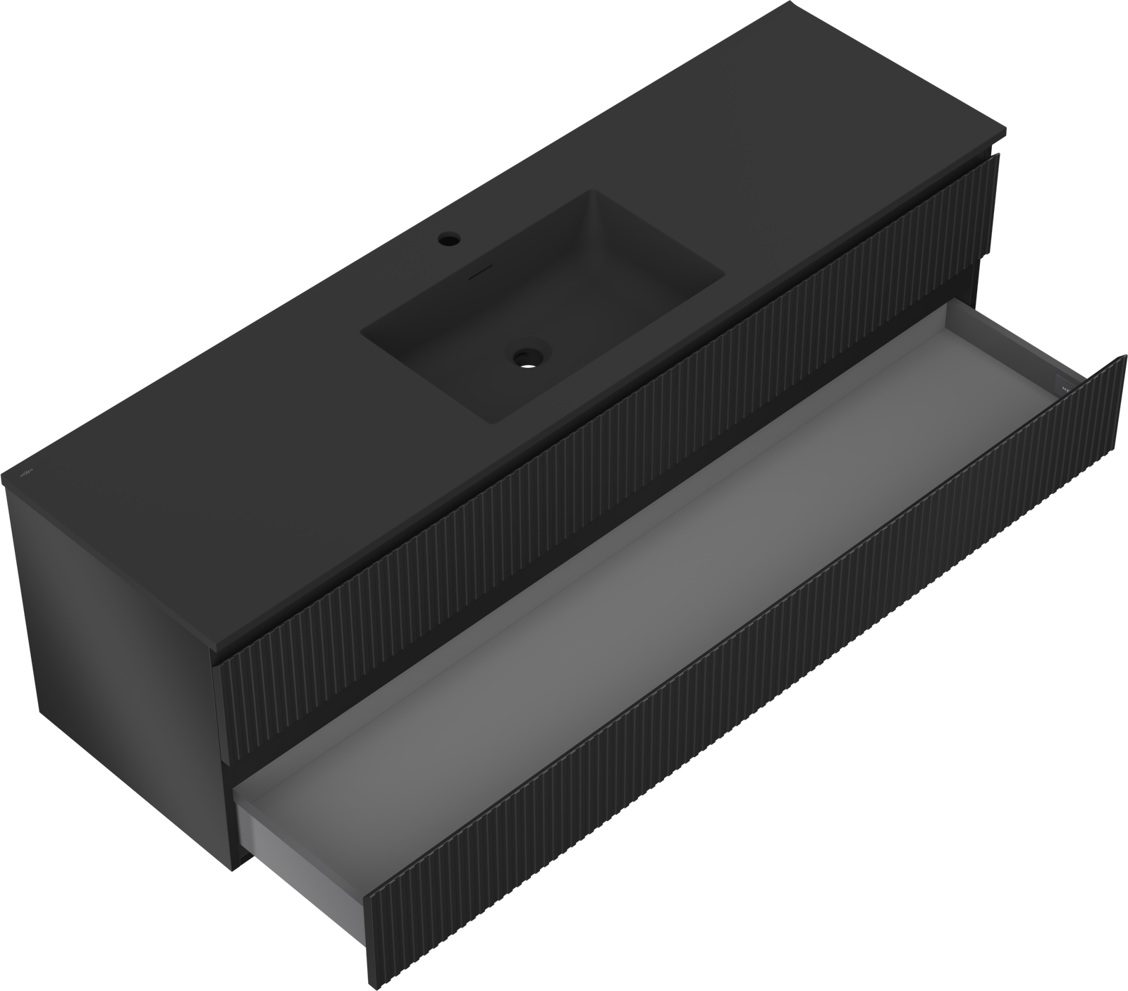 Mexen Rivel koupelnová skříňka 160 cm s umyvadlem Otis, 2 zásuvky, drážkovaná, černá mat - 91A20-16047-2-BFF71-W18M71
