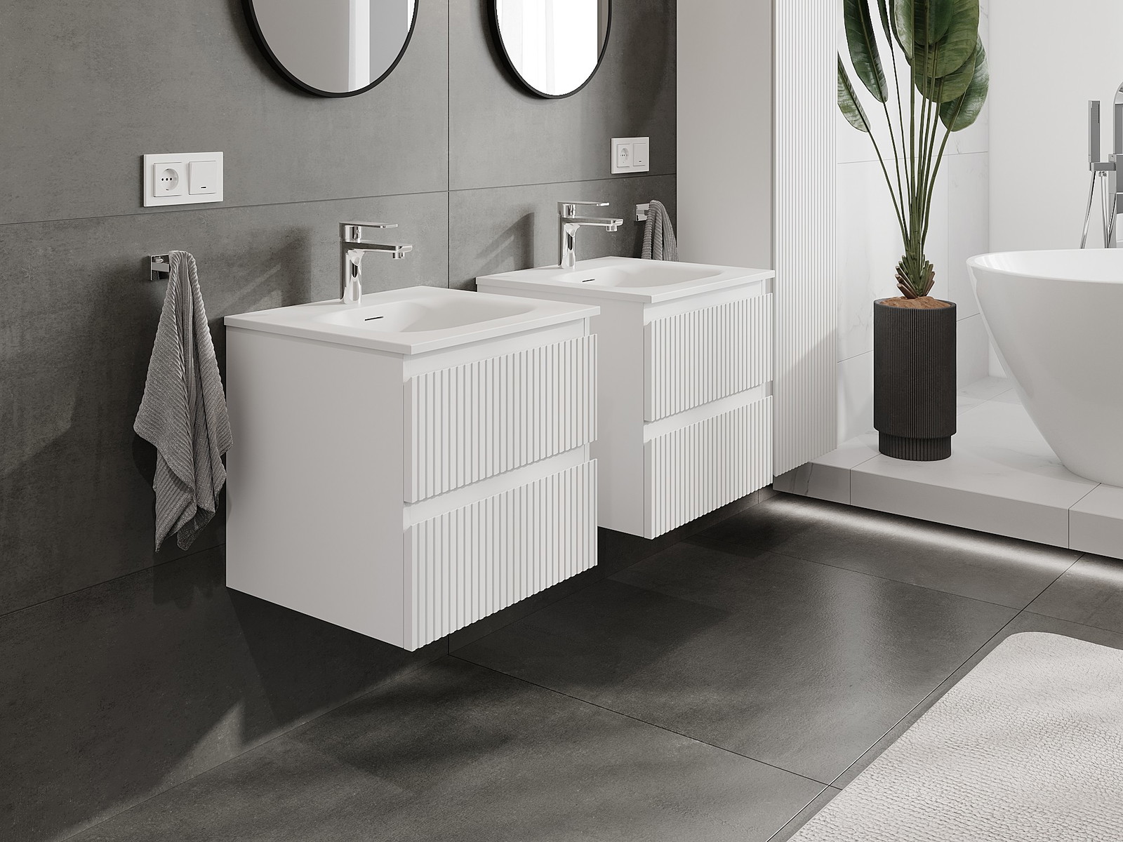 Naše modulární koupelnový nábytek lze kombinovat v různých barevných konfiguracích, což umožňuje plnou personalizaci. Můžete si vybrat jak vzhled, tak funkce jednotlivých prvků, což umožňuje přizpůsobit nábytek vašim stylovým a uživatelským preferencím.