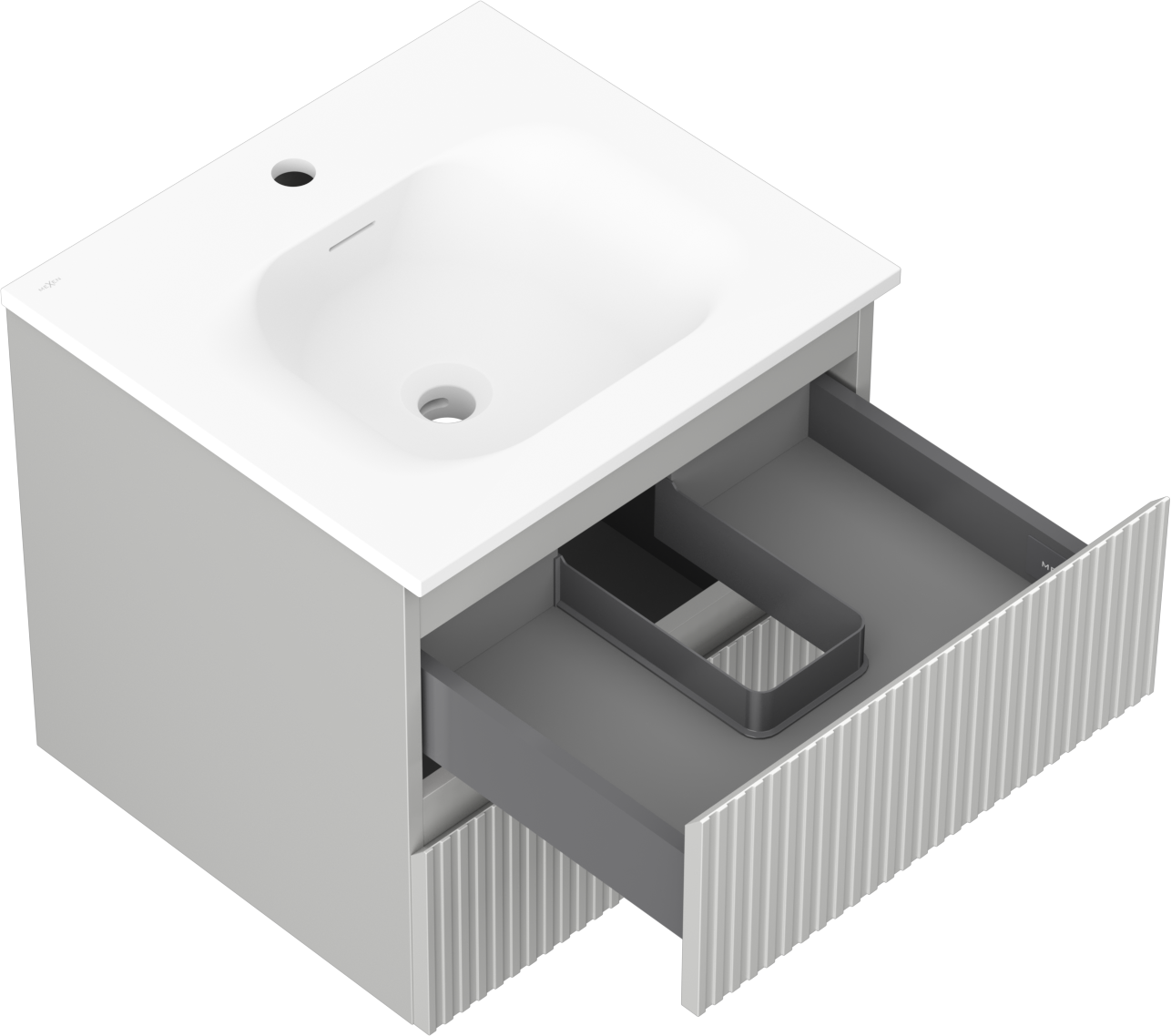 Výřez v zásuvce je navržen tak, aby pojmul sifon, který je nezbytný v instalacích umyvadlových. Díky tomu může být nábytek plně funkčně namontován, aniž by bylo nutné vzdát se prostoru v zásuvce ve prospěch instalace.