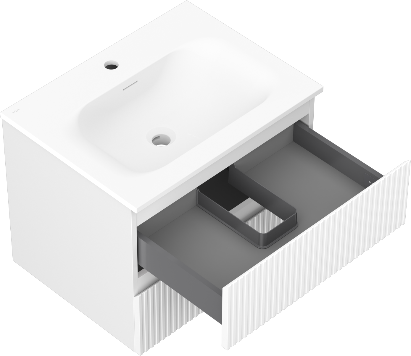 Výřez v zásuvce je navržen tak, aby pojmul sifon, který je nezbytný v instalacích umyvadlových. Díky tomu může být nábytek plně funkčně namontován, aniž by bylo nutné vzdát se prostoru v zásuvce ve prospěch instalace.