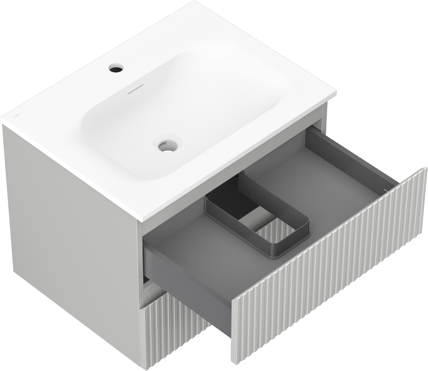 Výřez v zásuvce je navržen tak, aby pojmul sifon, který je nezbytný v instalacích umyvadlových. Díky tomu může být nábytek plně funkčně namontován, aniž by bylo nutné vzdát se prostoru v zásuvce ve prospěch instalace.