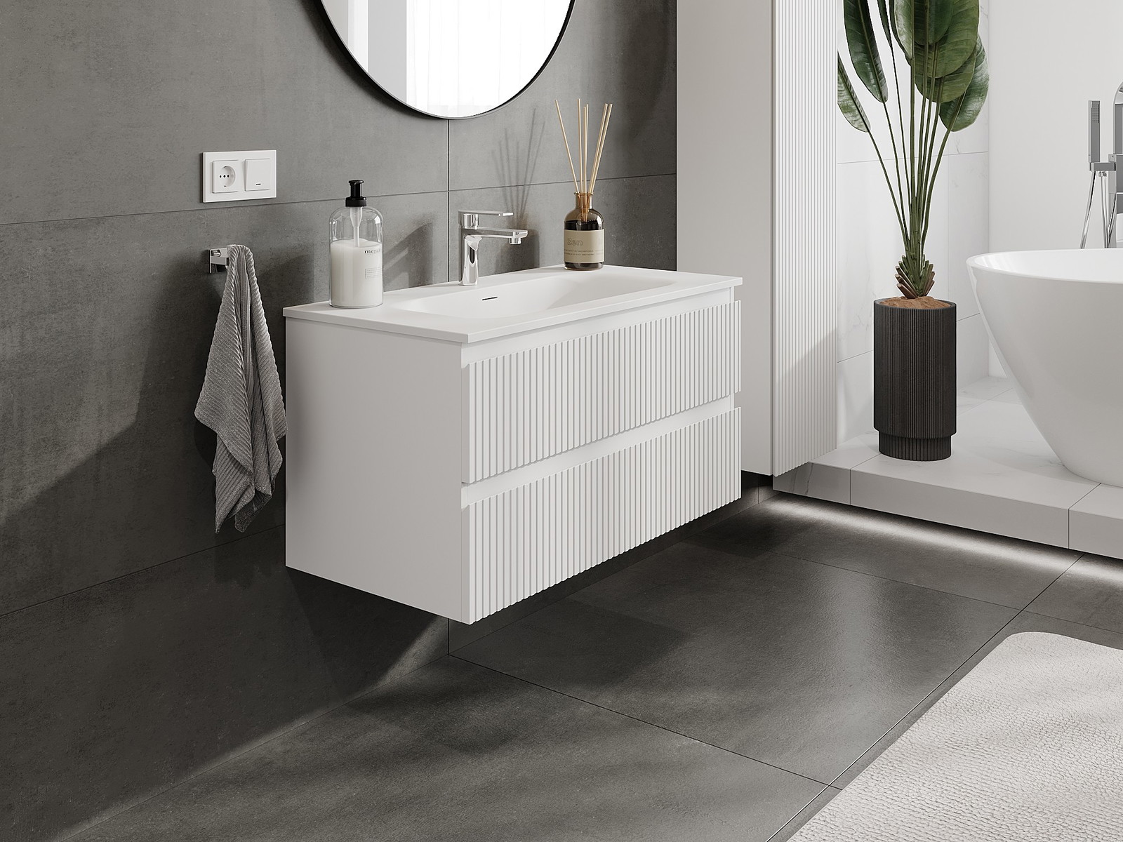 Umyvadlo má otvor, ve kterém lze namontovat baterii. Umožňuje to ušetřit cenný prostor v koupelně a zvýraznit její estetiku. Toto řešení také usnadňuje udržování čistoty kolem umyvadla.