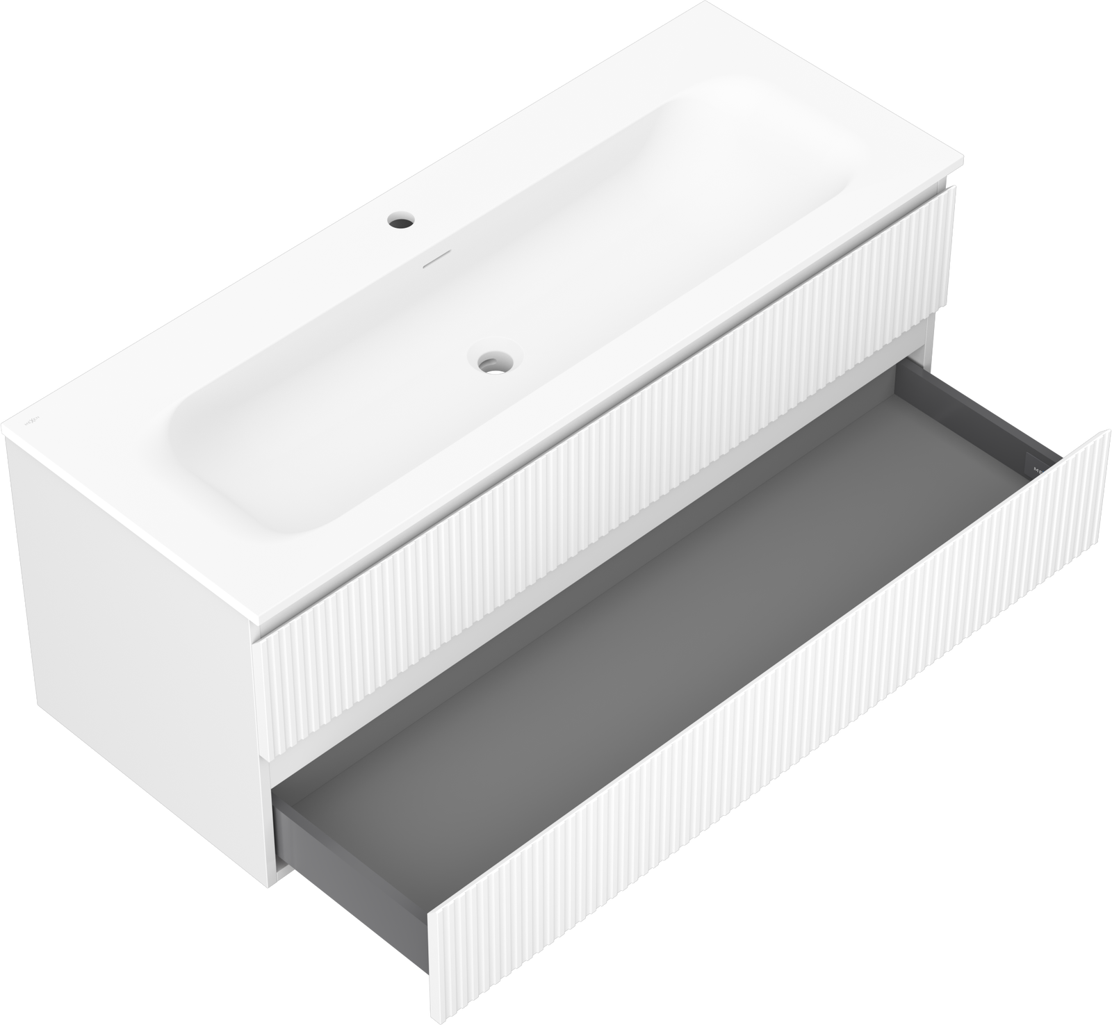 Výřez v zásuvce je navržen tak, aby pojmul sifon, který je nezbytný v instalacích umyvadlových. Díky tomu může být nábytek plně funkčně namontován, aniž by bylo nutné vzdát se prostoru v zásuvce ve prospěch instalace.