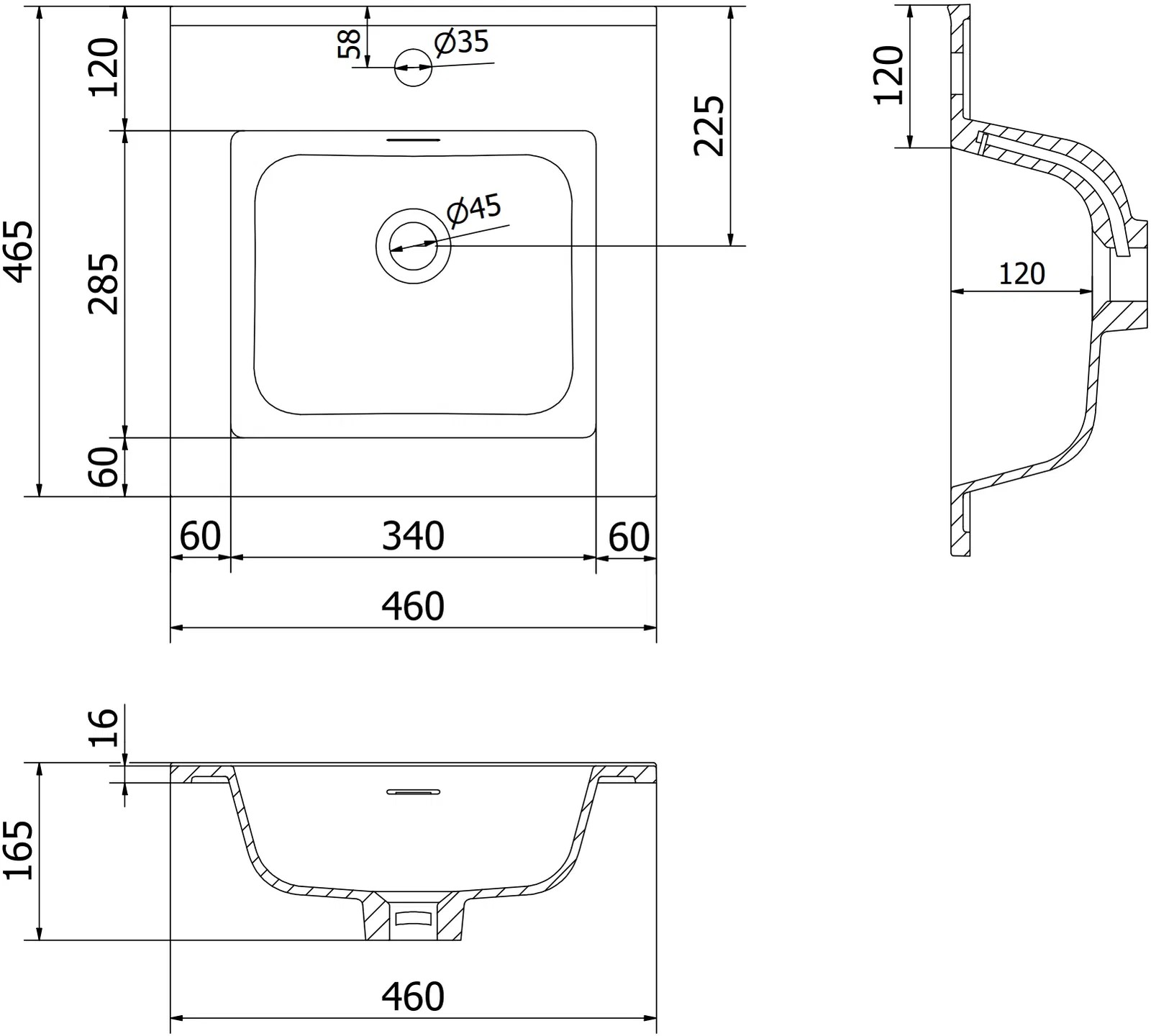 Specifikace produktu: Rozměry skříňky: Šířka: 45 cm Hloubka: 46 cm Výška: 47 cm Barva korpus: Bílá mat Materiál korpus: Lakovaná deska Barva přední strany: Bílá mat Materiál přední strany: Lakovaná deska MDF Struktura přední strany: Vroubkovaná  Počet dveří: 1 1 polička  Závěsy s funkcí tichého zavírání Univerzální montáž dveří (levo/pravo) Povrch odolný vůči UV záření Rozměry umyvadla: Šířka: 46 cm Hloubka: 46,5 cm Výška: 16,8 cm Barva umyvadla: Bílá mat Materiál umyvadla: Konglomerát Přelivový otvor: Ano Otvor pro baterii: Ano Produkt sestaven