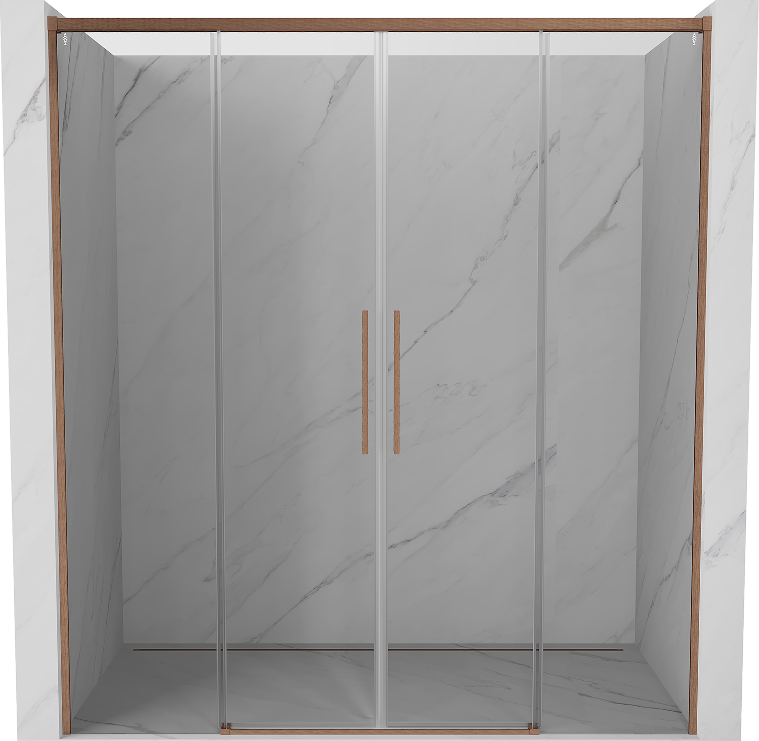 Mexen Rox Duo sprchové dveře posuvné 190 cm, průhledné, kartáčovaná měď - 8C2-190-002-65-00